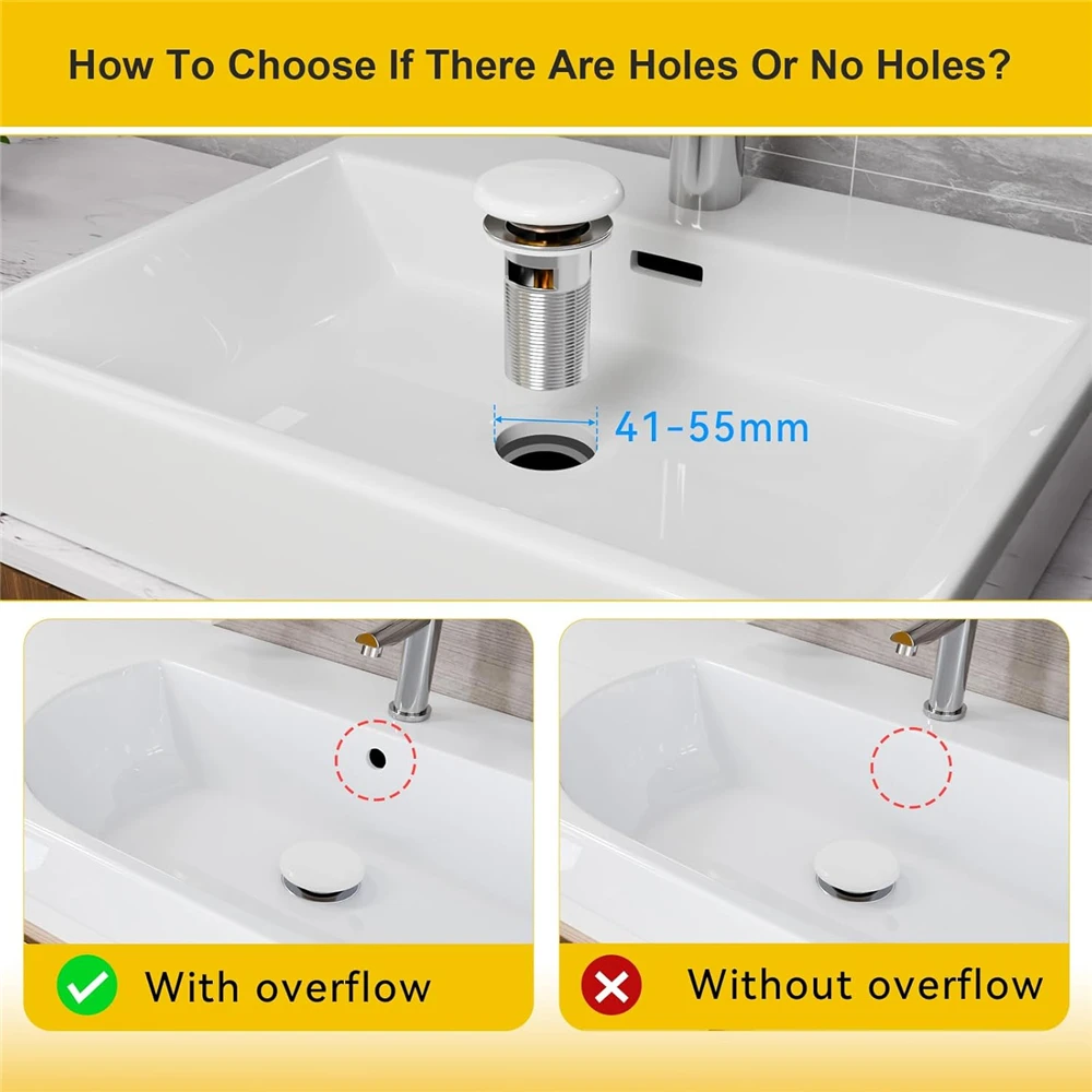 👍Sans dépassement et sans dépassement : les couvercles en céramique blanche modernes sont plus adaptés à votre lavabo de salle de bain.Ensemble de déchets sans trop-plein, convient uniquement aux lavabos sans trous de trop-plein.Ensemble de déchets Avec trop-plein, convient uniquement aux lavabos avec trous de trop-plein.Veuillez vérifier votre évier pour détecter les trous de trop-plein avant d’acheter.