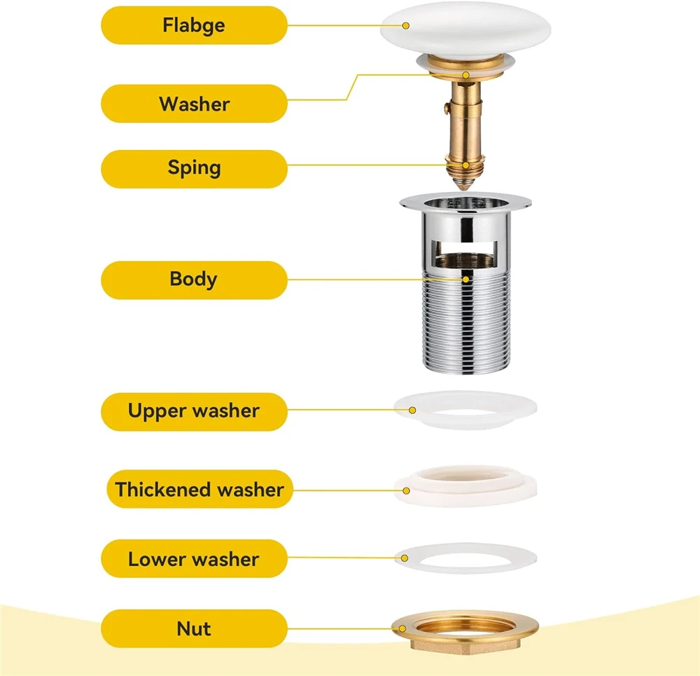 👍Ensemble de déchets pop-up – Équipé d’un noyau à ressort de haute qualité, le jeu de déchets d’évier s’ouvre ou se ferme immédiatement en appuyant simplement sur un doigt à l’aide du mécanisme pop-up.Fini les soucis coincés.Lorsqu’un nettoyage est nécessaire, dévissez simplement le couvercle en céramique.