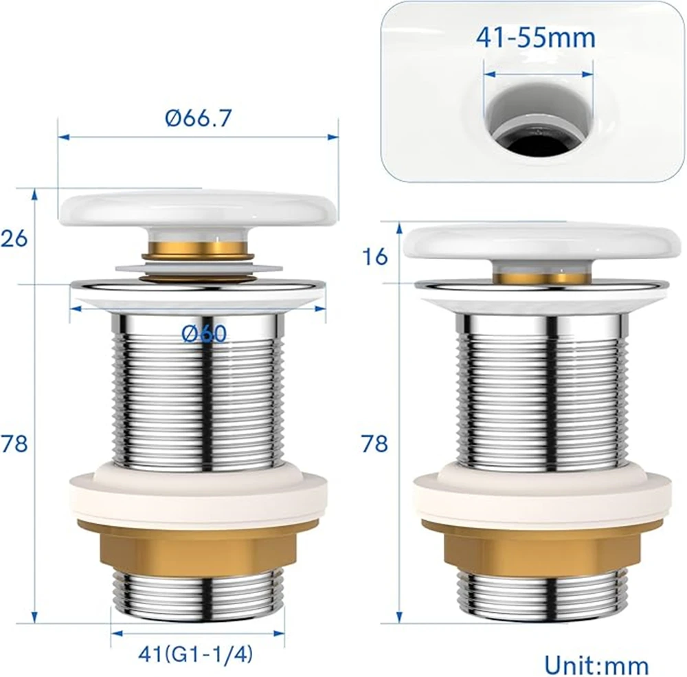 👍Dimension d’installation standard : la valve de vidange d’évier a un ajustement standard de 1 1/4 pouce (41 mm) et convient aux éviers de salle de bain tels que les maisons, les hôtels, les bars et les restaurants.Notre drain d’évier s’adapte à une ouverture d’évier de 41 mm à 55 mm.