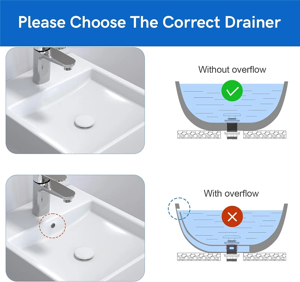 👍 Sans OVERFLOW & WITH OVERFLOW – Les housses modernes en céramique blanche sont plus adaptées au lavabo de votre salle de bain. Ensemble de déchets Sans trop-plein, adapté uniquement aux lavabos sans trous de trop-plein. Ensemble de déchets Avec trop-plein, adapté uniquement aux lavabos avec trous de trop-plein. Veuillez vérifier votre évier pour les trous de trop-plein avant d’acheter.