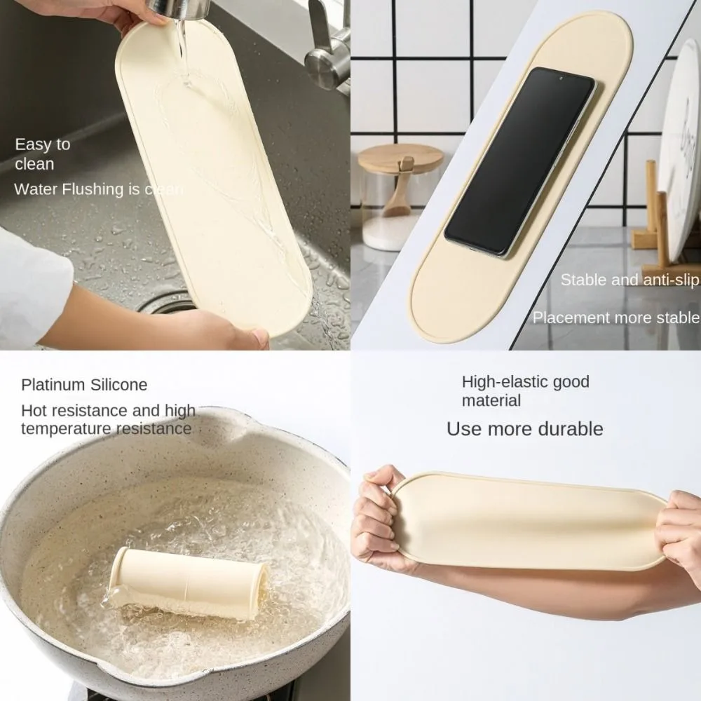 3. Facile à nettoyer: fabriqué en silicone lavable, ce plateau est facile à nettoyer. Il suffit de le rincer à l’eau ou de l’essuyer avec un chiffon humide pour éliminer tout résidu ou déversement. C’est une solution hygiénique et à faible entretien pour votre cuisine ou votre salle de bain.