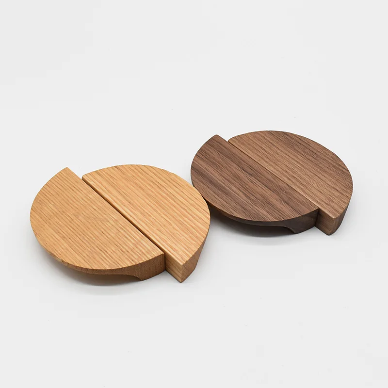 Poignées d’armoire de cuisine en demi-cercle en bois massif, en hêtre/noyer, pour garde-robe de chambre à coucher, boutons de porte de placard, quincaillerie d’armoire