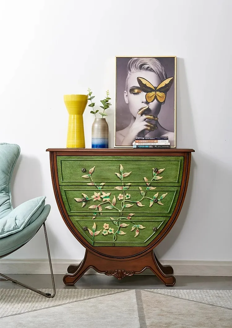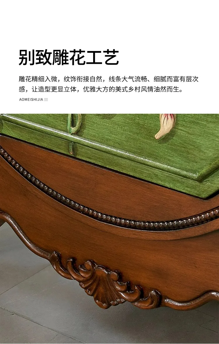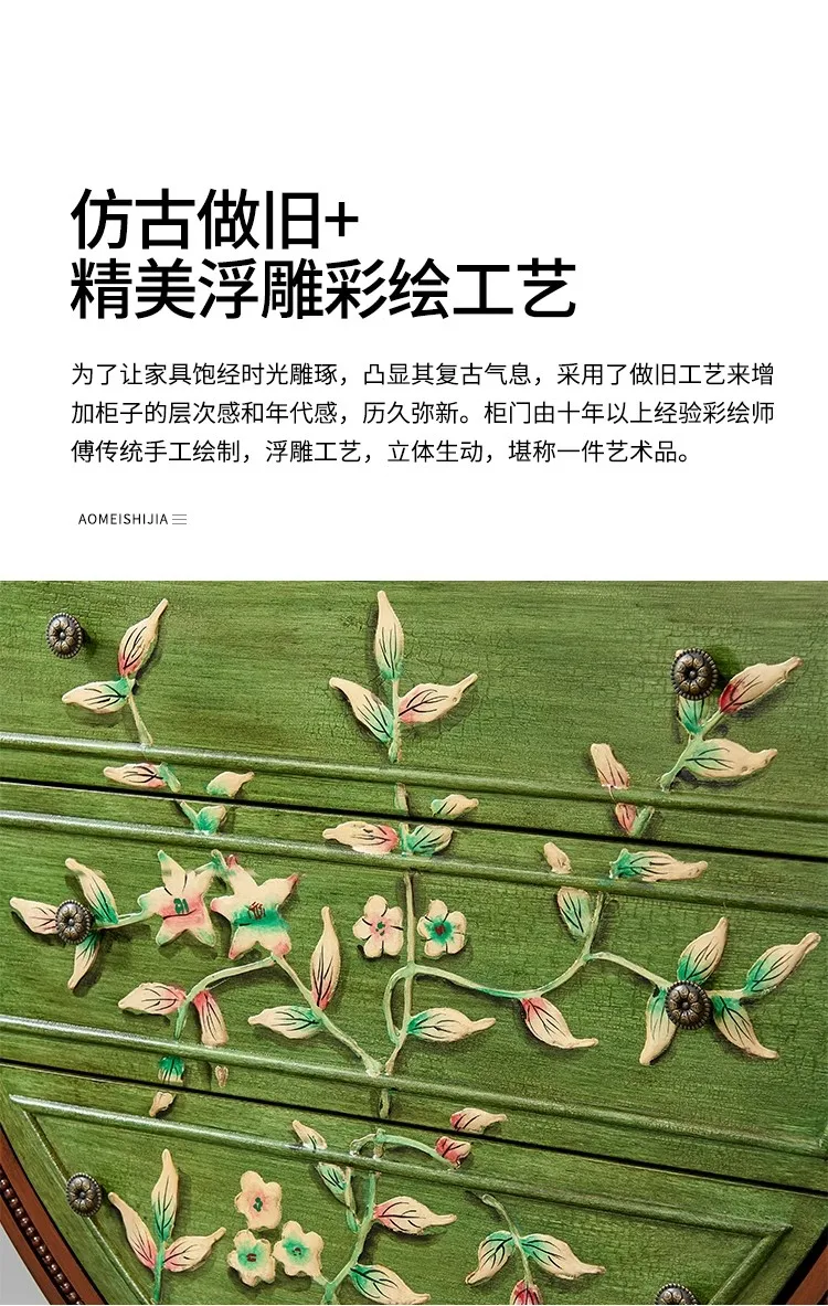 4. Dans la commande pour laisser les meubles sculptés avec le temps et mettre en valeur son saveur rétro, la technologie à l’ancienne est adoptée pour augmenter la superposition et le sens des times de l’armoire, qui fera pour toujours. La porte de l’armoire est peinte à la main par un peintre avec une expérience de plus de dix ans, avec technologie en relief et tridimensionnelle vive.
