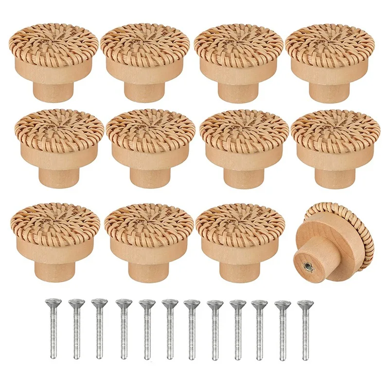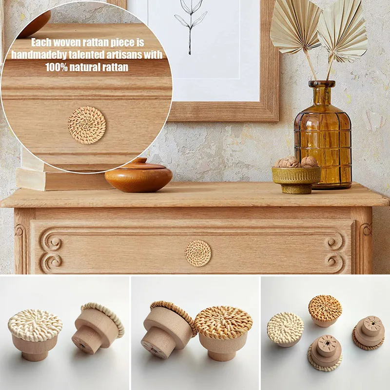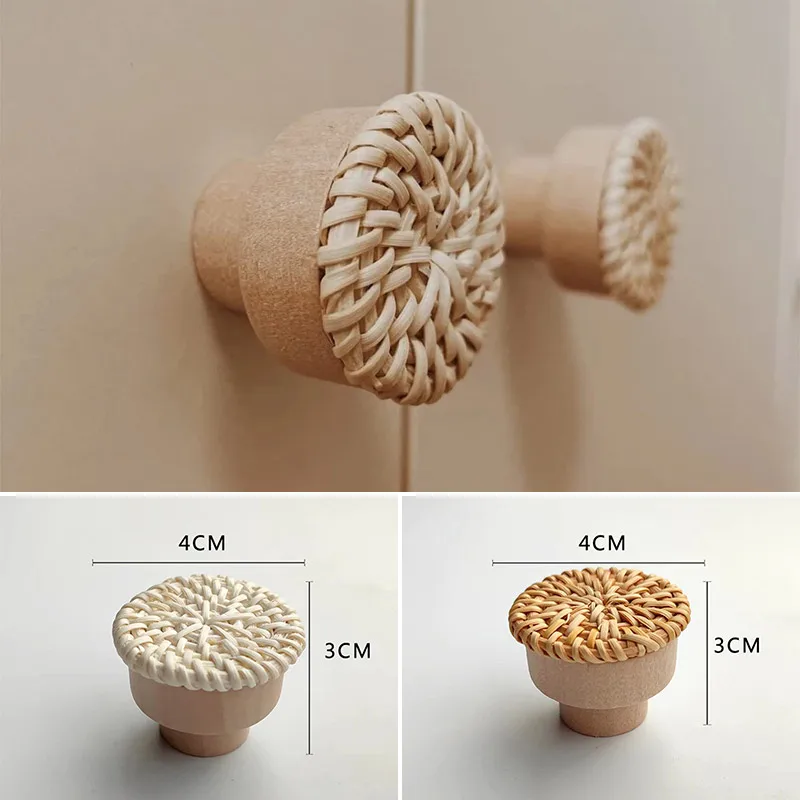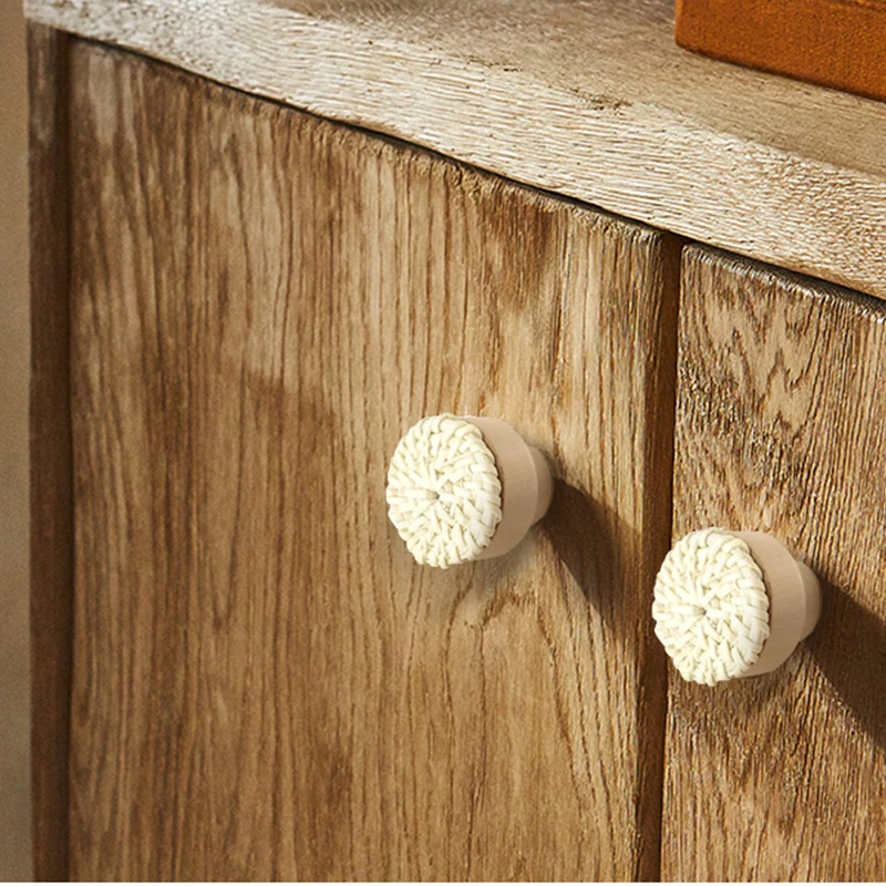 Nom du produit : poignée de porte en bois tissée créative, poignée de tiroir champignon.