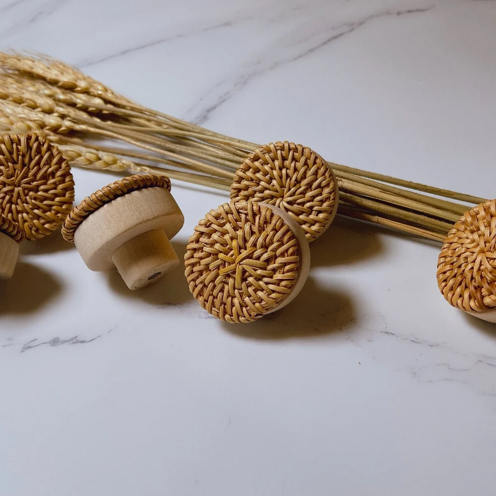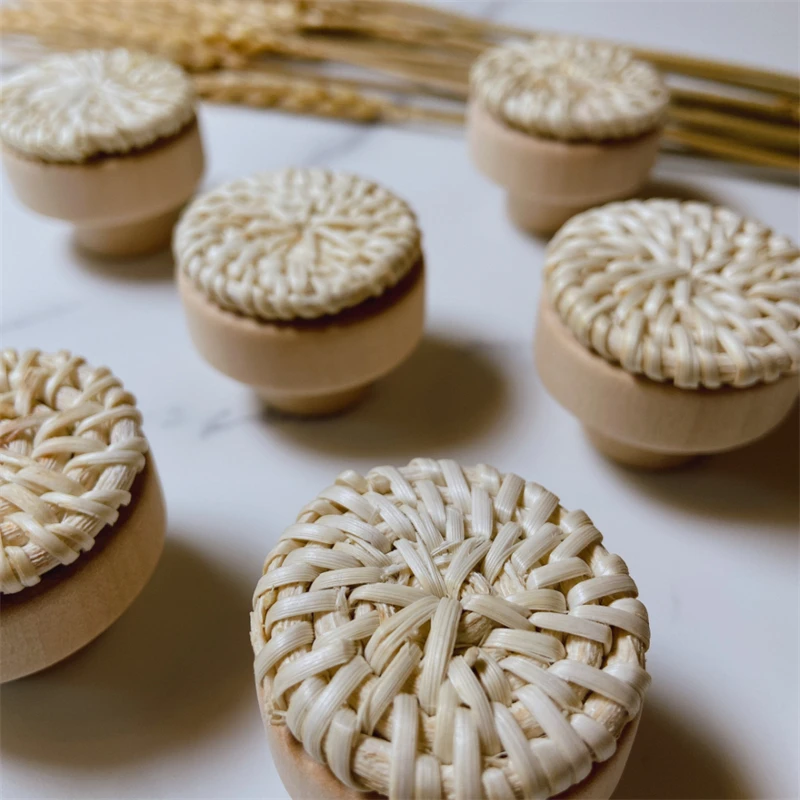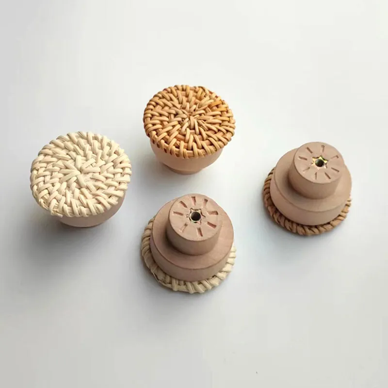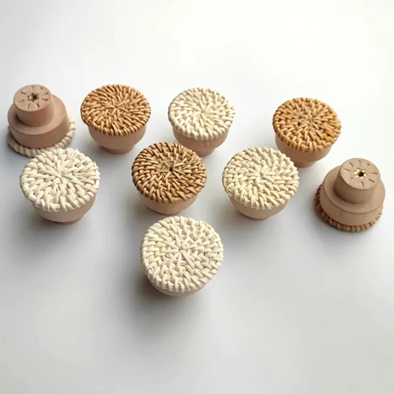 Nom du produit : poignée de porte en bois tissé créatif, traction de tiroir en forme de champignon