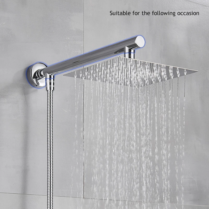Ulgksd Chrome Brass Wall Mounted Shower Arm Bathroom Shower Head Bracket Bar G1/2 Shower Head Fixed Pipe Shower Head Holder