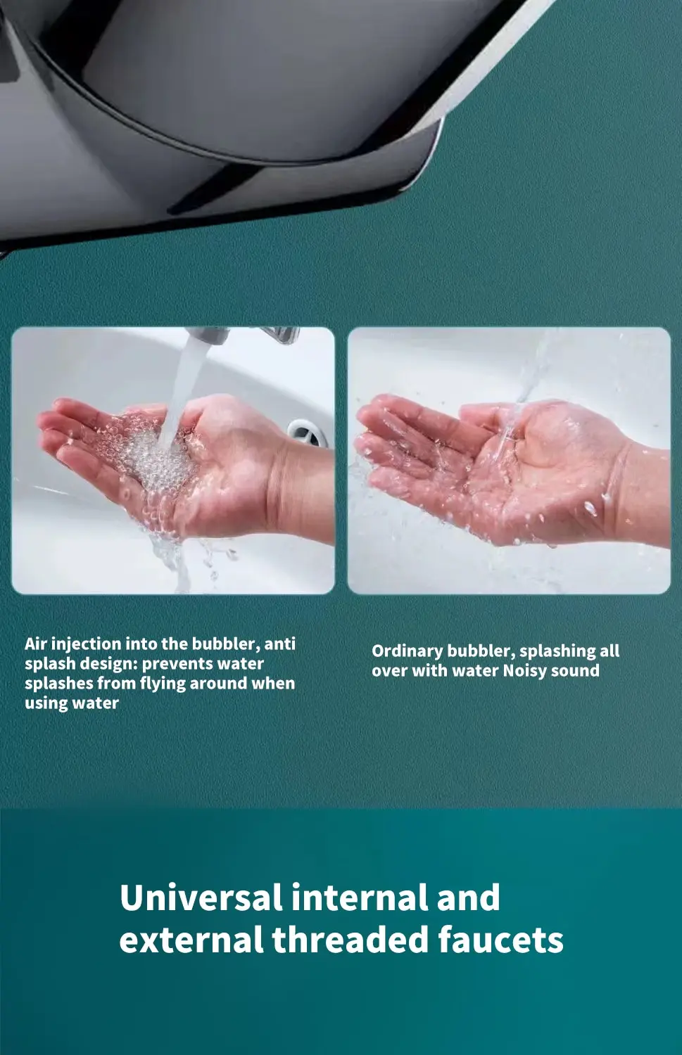Le [Robinet à filtre rotatif] Le robinet à filtre anti-éclaboussures ajoute de l’air au flux d’eau pour l’enrichir en oxygène, ce qui