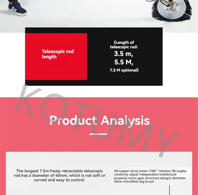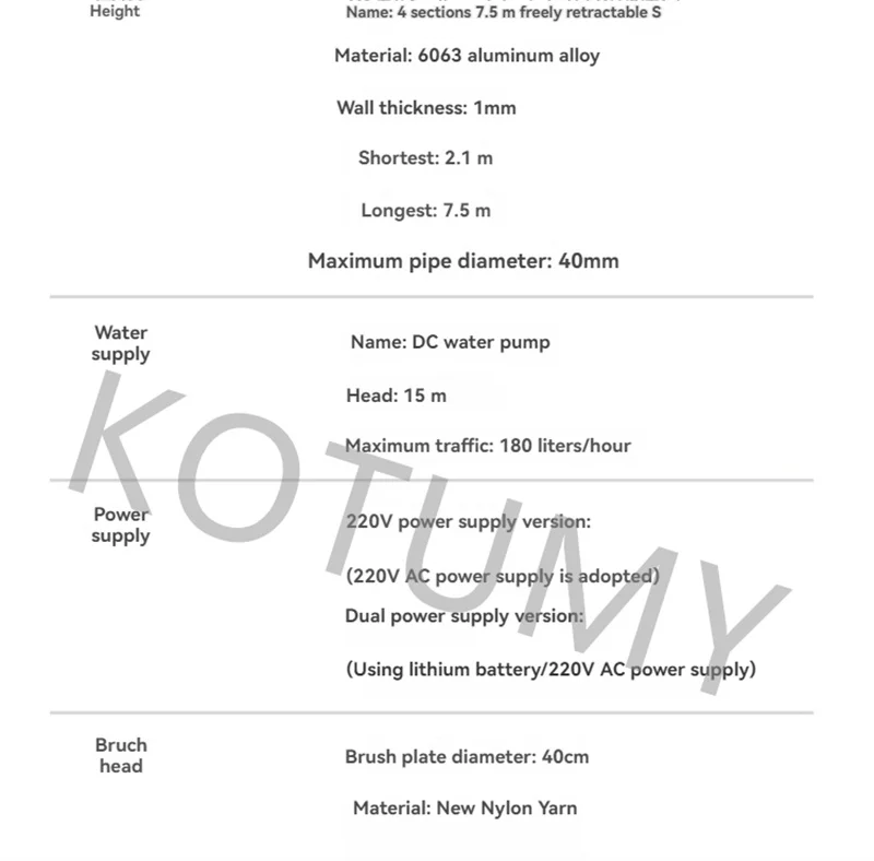 Si vous avez besoin de tiges télescopiques d’autres longueurs ou de têtes de brosse d’autres tailles, veuillez se sentir gratuitement pour consulter le service client ~
