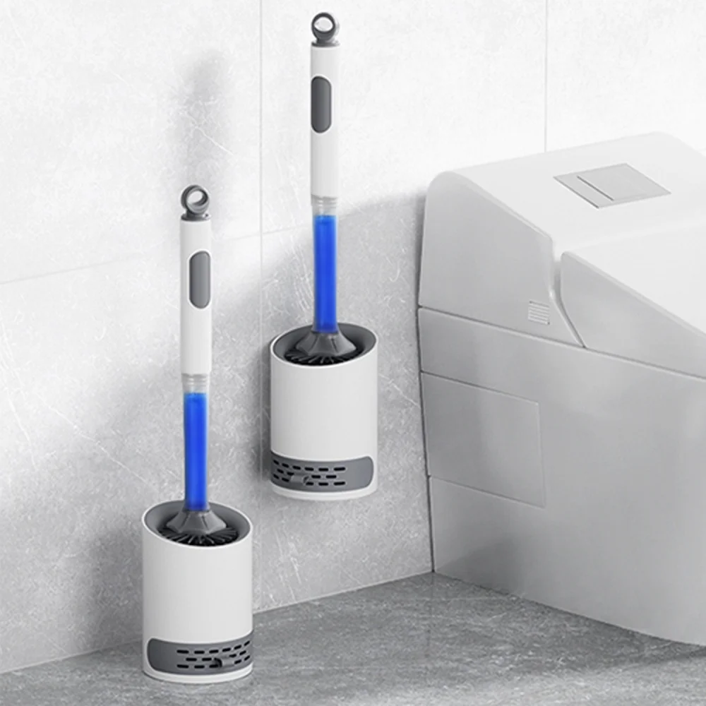 Brosse de toilette en Silicone à pulvérisation d’eau, avec ensemble de 40cm de Long, brosse Tpr rechargeable avec accessoires de nettoyage de salle de bains muraux