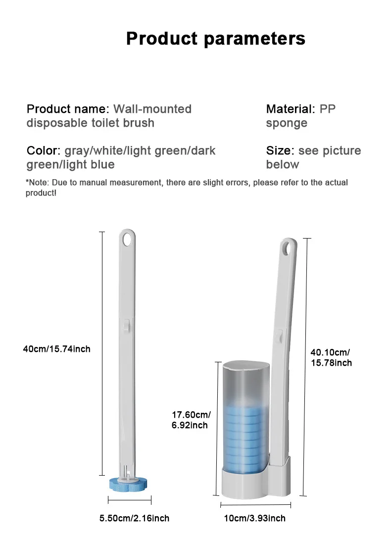Nom du produit : brosse de toilette jetable murale.