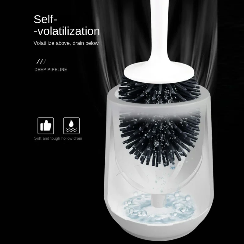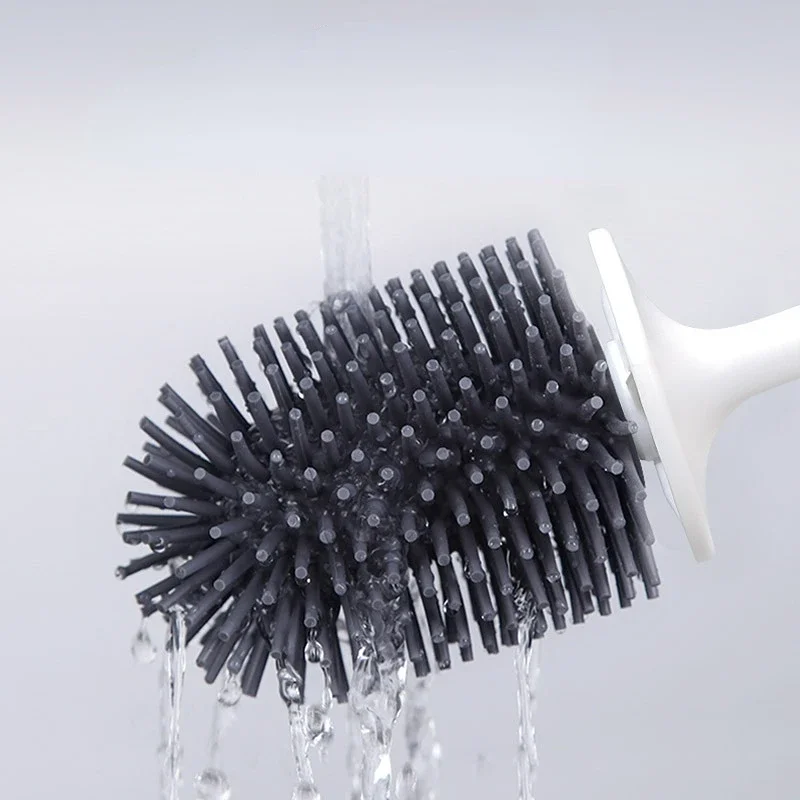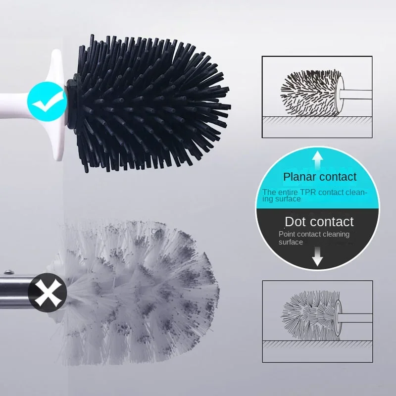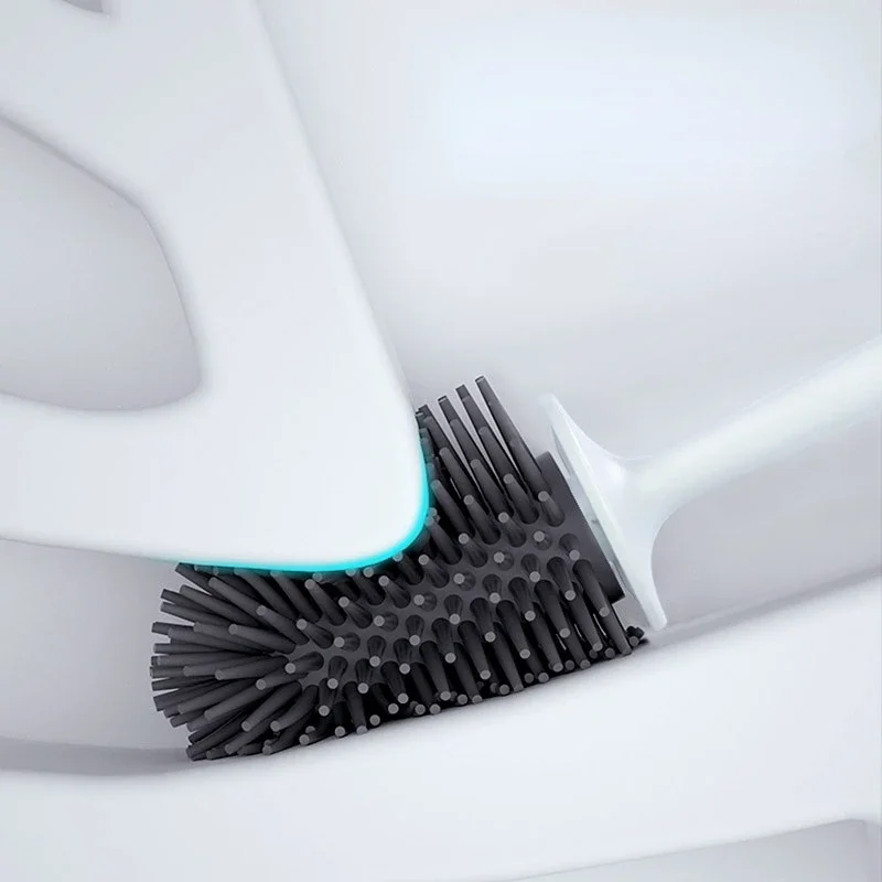 Brosse de toilette noire en Silicone TPR souple, salle de bains, tête de brosse sans coins morts, brosses de nettoyage sur pied pour la maison, accessoires de WC