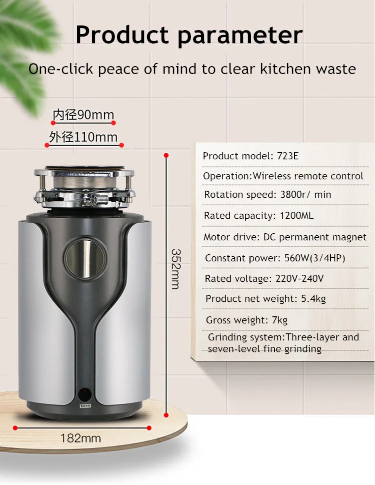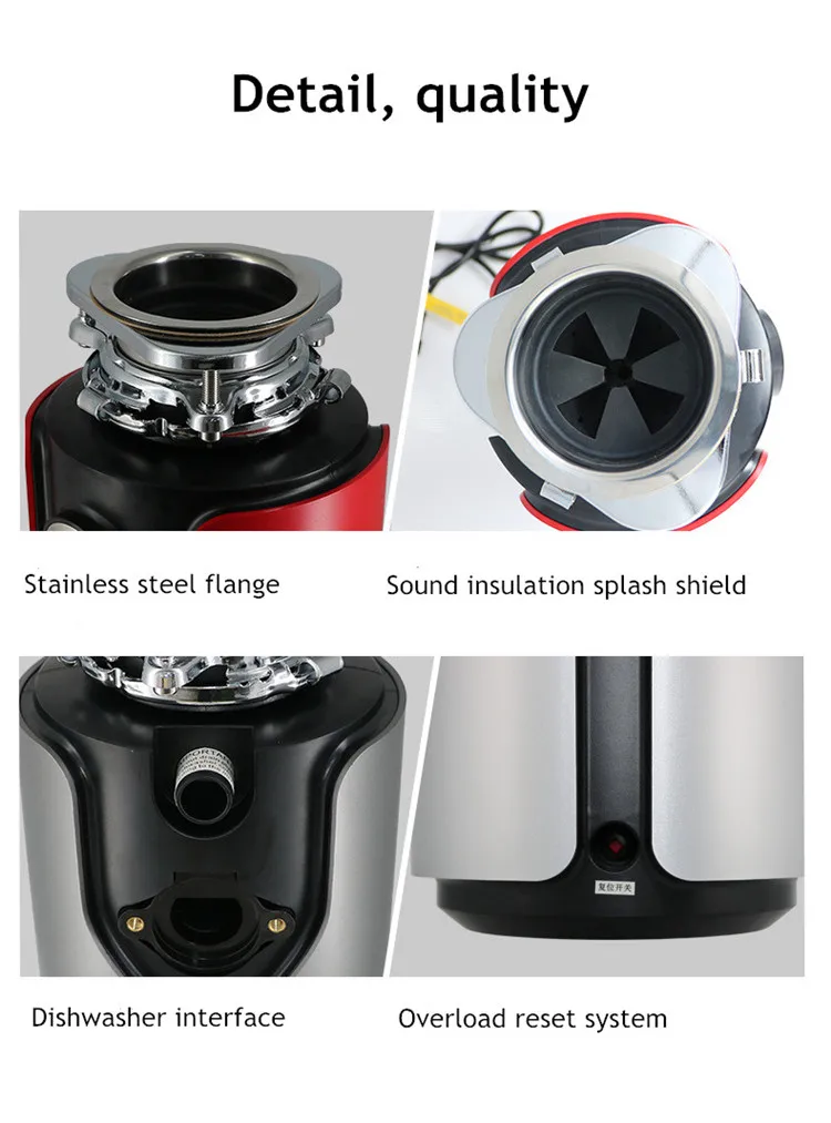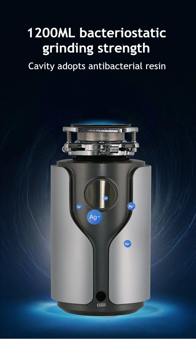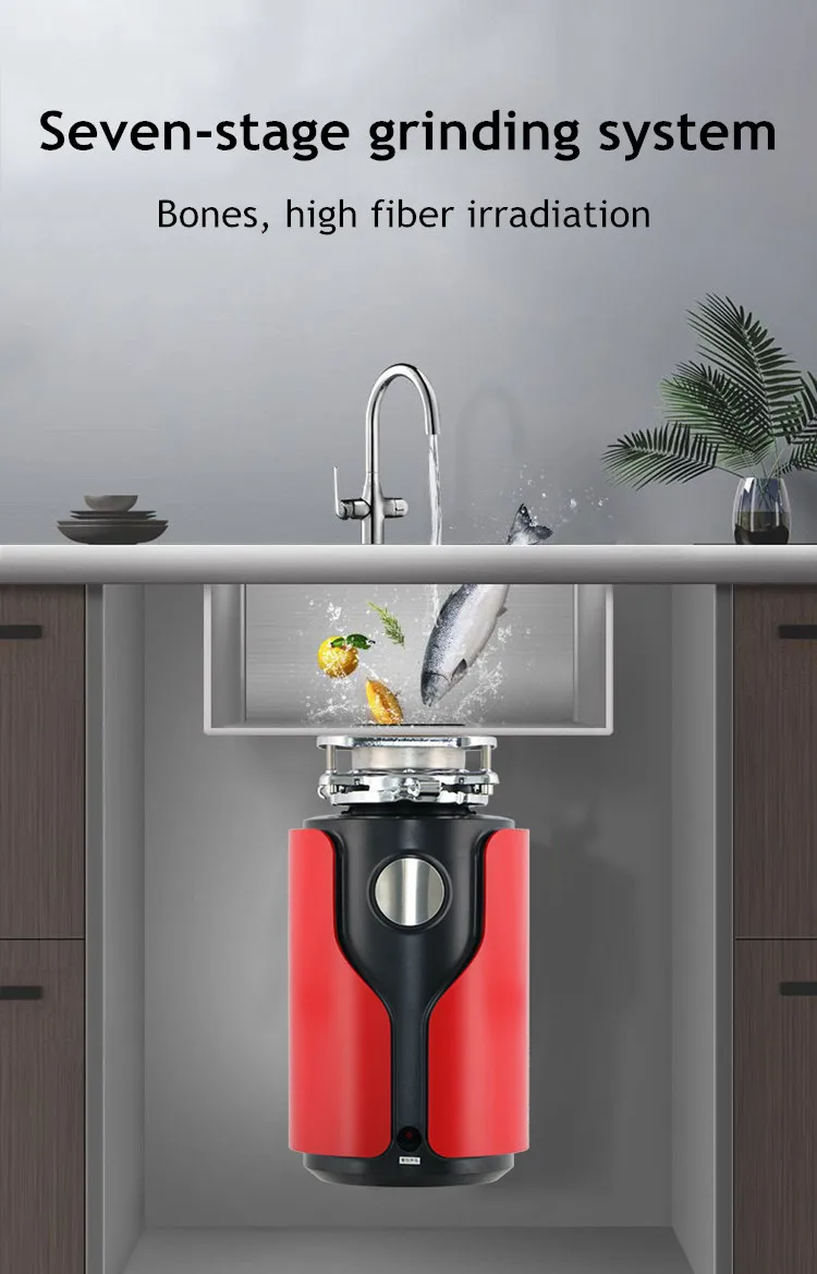 Our food waste disposer features a 7-stage grinding system for efficient and thorough processing of kitchen waste.