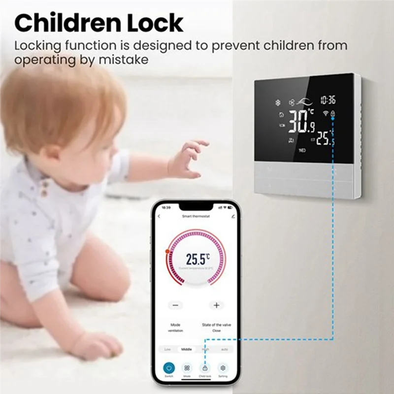 Réglage du mode de ventilation : 4 modes sélectionnables : élevé/moyen/faible/et automatique.Et il dispose d’une fonction de sécurité enfant, qui verrouille l’écran pour empêcher les enfants de l’utiliser accidentellement.