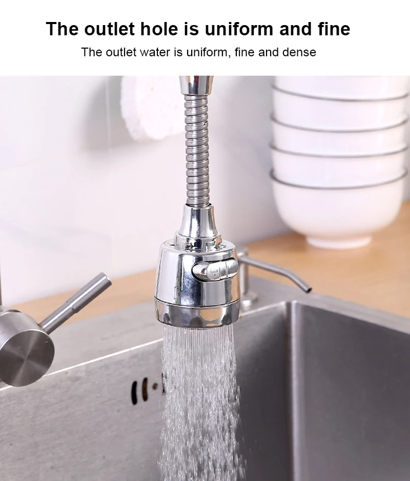 Buse haute pression à économie de douche flexible à 360 degrés Connecteur de robinet en acier inoxydable Tête de robinet anti-éclaboussures réglable pour la cuisine