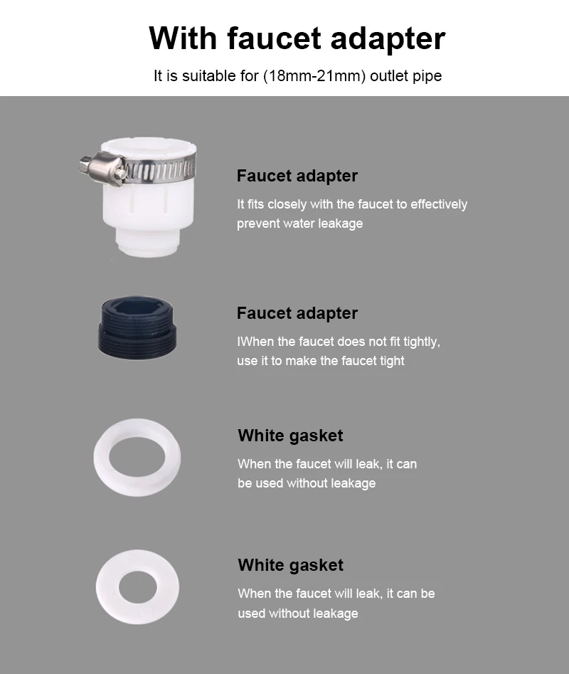 Un accessoire en caoutchouc blanc est attaché pour assurer aucune fuite après l’installation!
