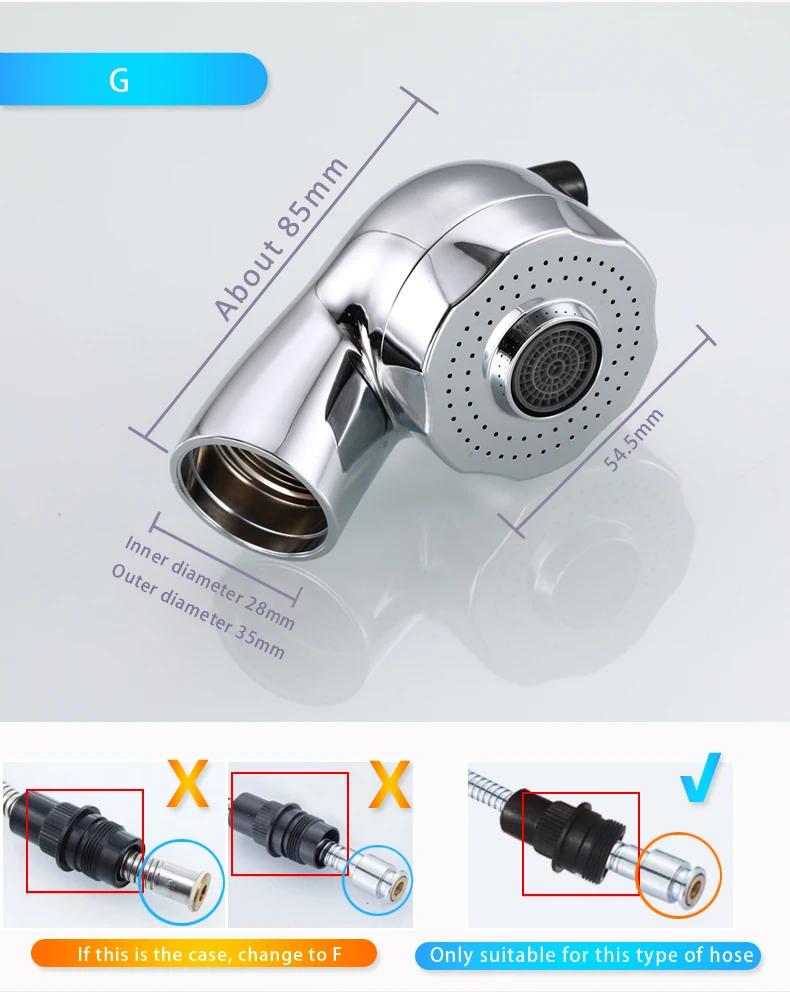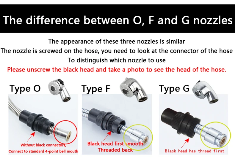 Because there are many specifications, please be sure to unscrew your original nozzle before buying, and compare it according to the style of the hose head and the thread of the black head.