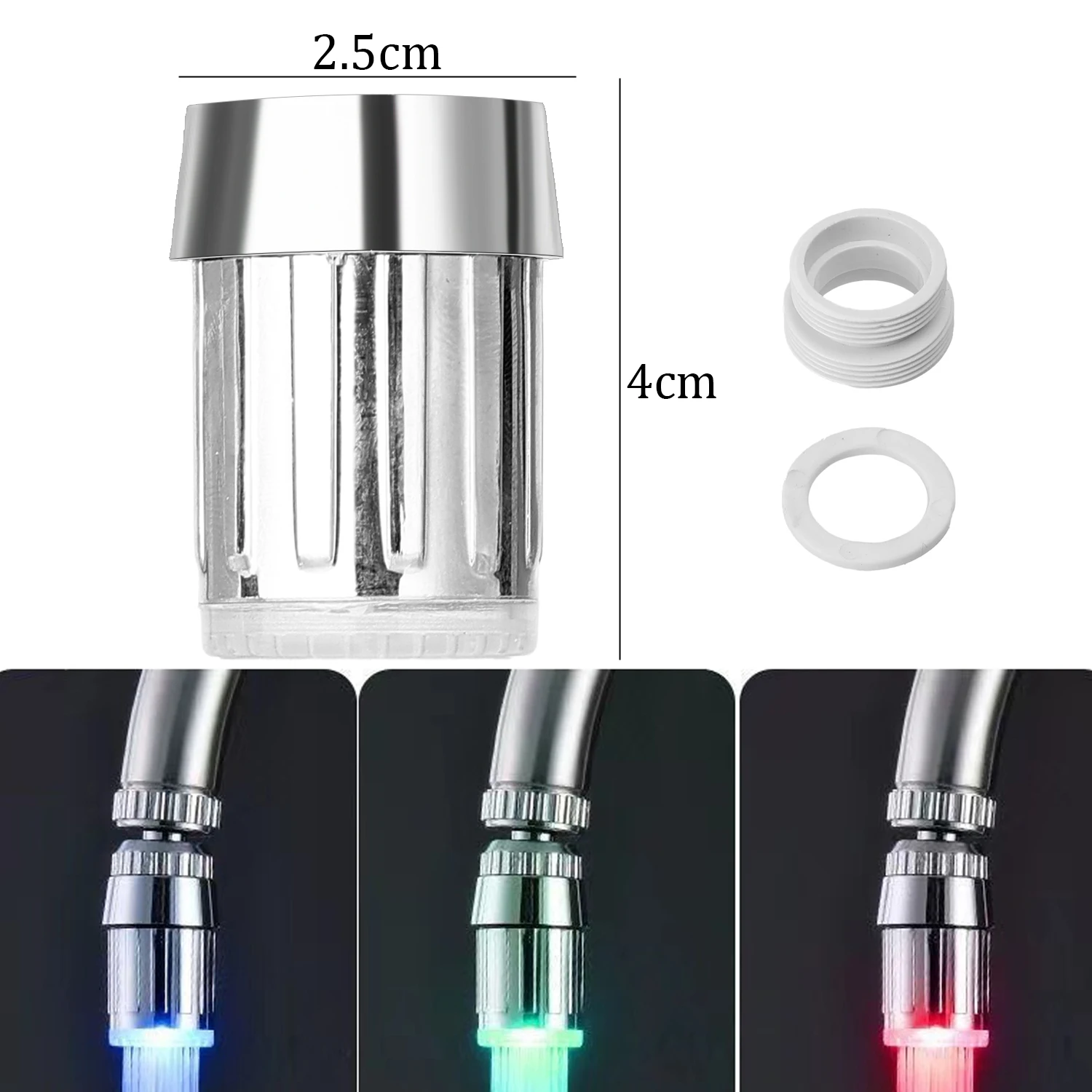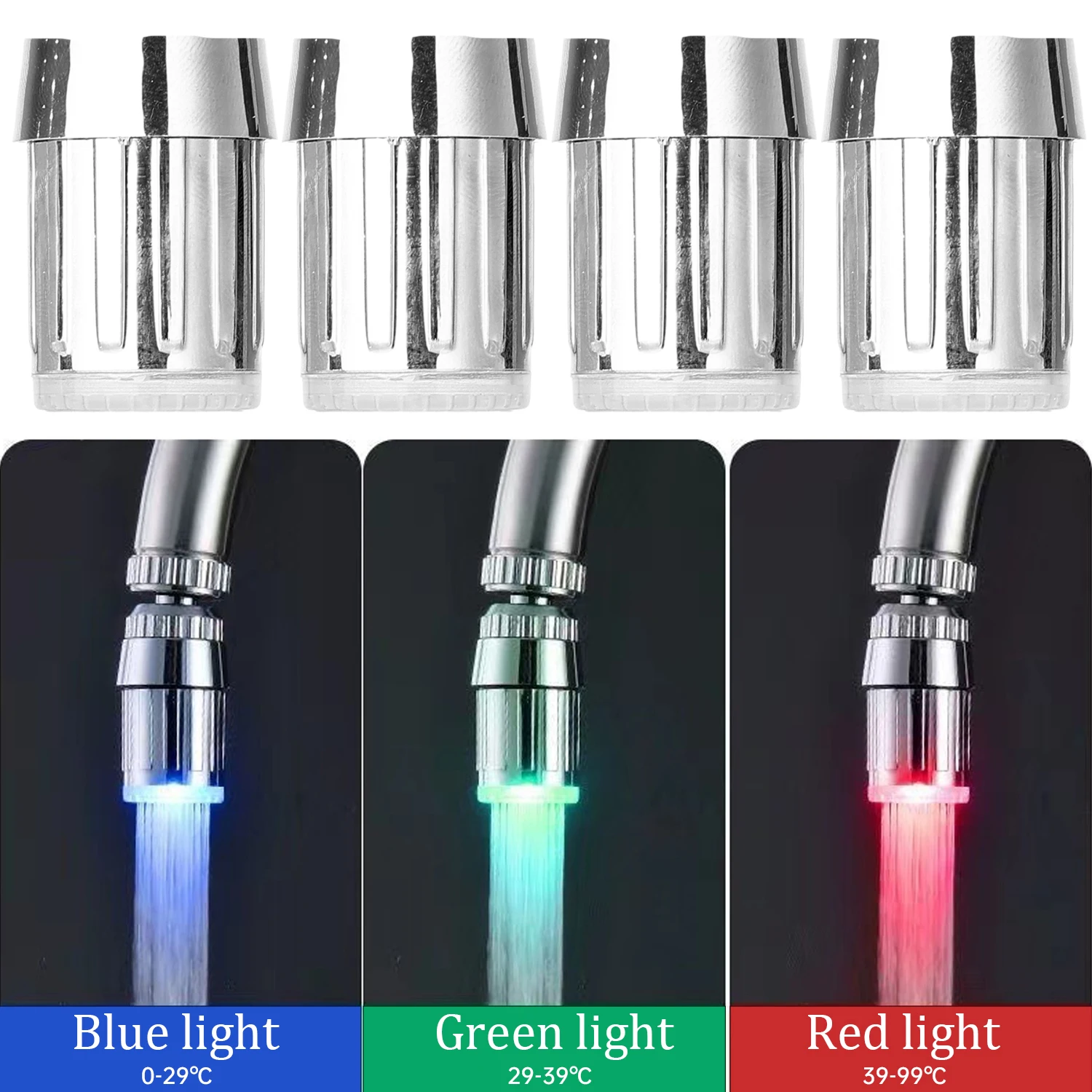 Caractéristiques: aucune batterie requise, la couleur change avec la température de l’eau, la lumière tricolore et une luminosité plus élevée avec un débit d’eau plus important