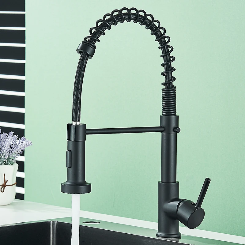 Buse de robinet de grue de centre commercial d’eau chaude et froide, 256 côtes noires vers le bas, modes d’eau pour les touristes, ressort en laiton, évier de cuisineBuse de robinet de grue de centre commercial d’eau chaude et froide, 256 côtes noires vers le bas, modes d’eau pour les touristes, ressort en laiton, évier de cuisine