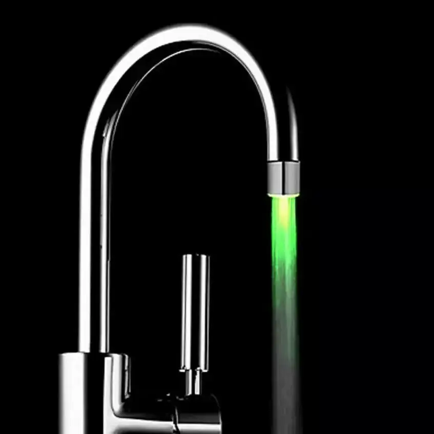 2.Ce petit appareil s’adapte à la plupart des robinets et allume un ensemble de LED lorsque vous transforme sur le robinet.