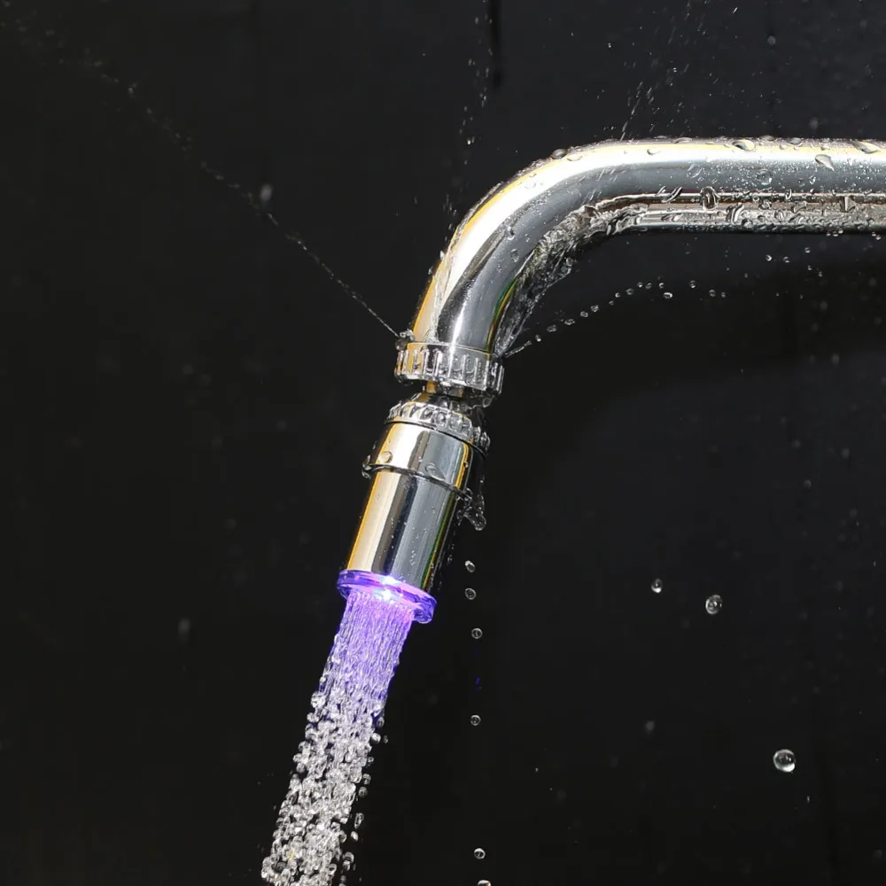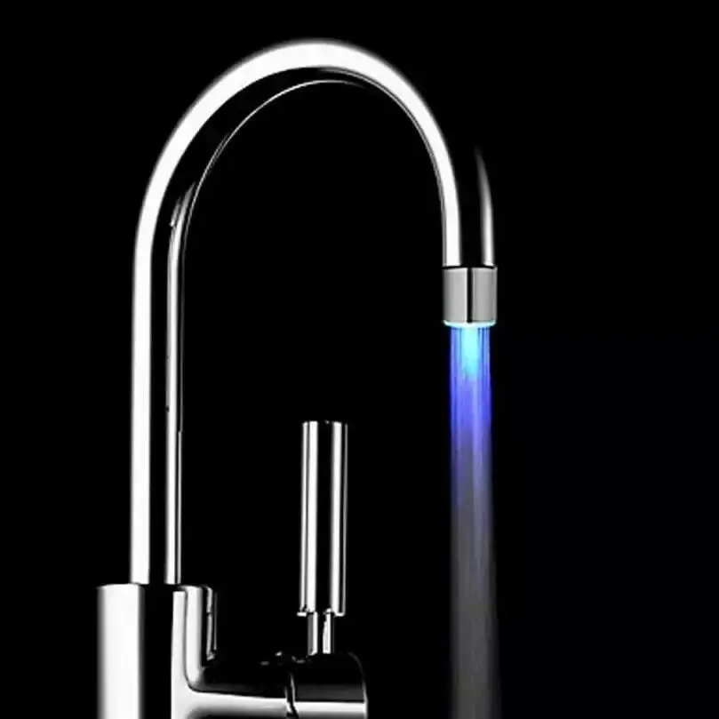 Robinet de robinet lumineux LED à changement de 7 couleurs, buse d’eau lumineuse, buse de douche pour lavabo de cuisine et de salle de bains