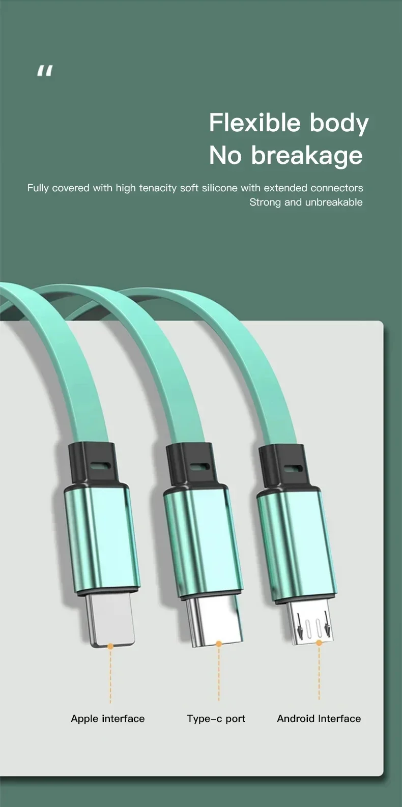 Poids : 50 g Le paquet comprend : 1 pièce Matériau : ABS Type : Type-C+Apple+Android Couleur : Noir/Rose/Rouge/Jaune/Violet/Vert menthe Caractéristiques : 1,3 A charge rapide, stable et compatible. 2. Réunion à 99% des besoins des équipements quotidiens. 3. Conception télescopique à un glisser trois, pour étirer, anti-enroulement et trois extrémités peuvent être chargées rapidement en même temps. 4. Un câble de données est universel pour tous les téléphones mobiles, avec fonction de reconnaissance automatique pour une charge rapide et une charge flash.