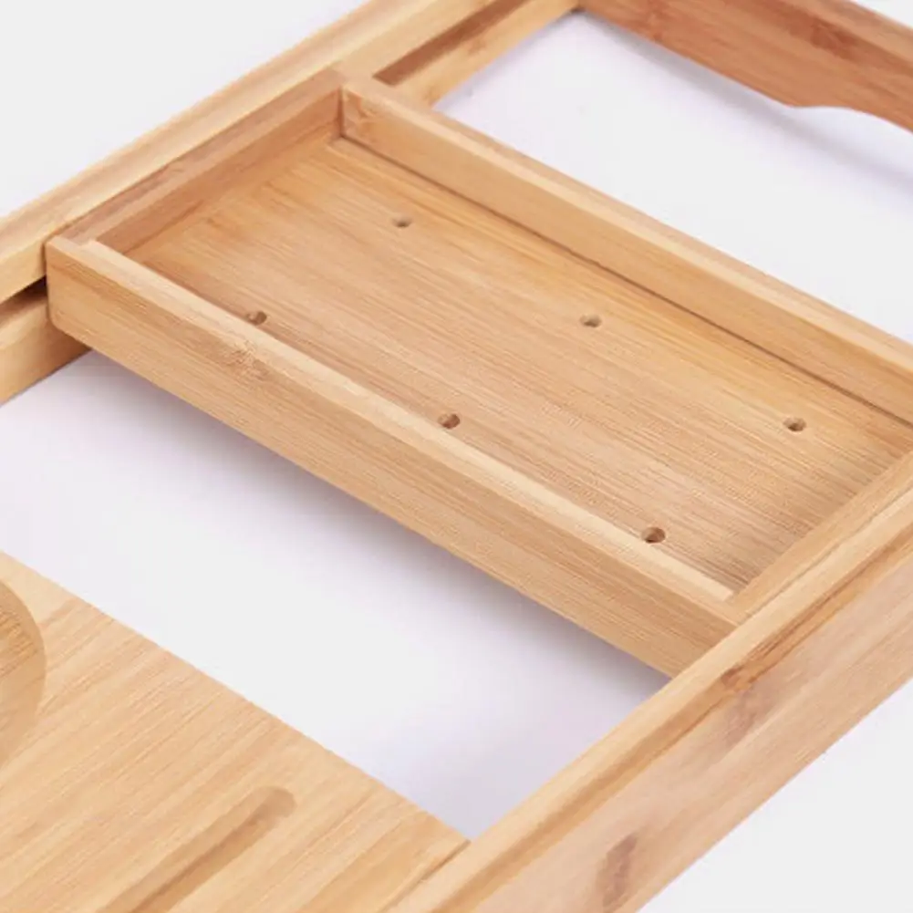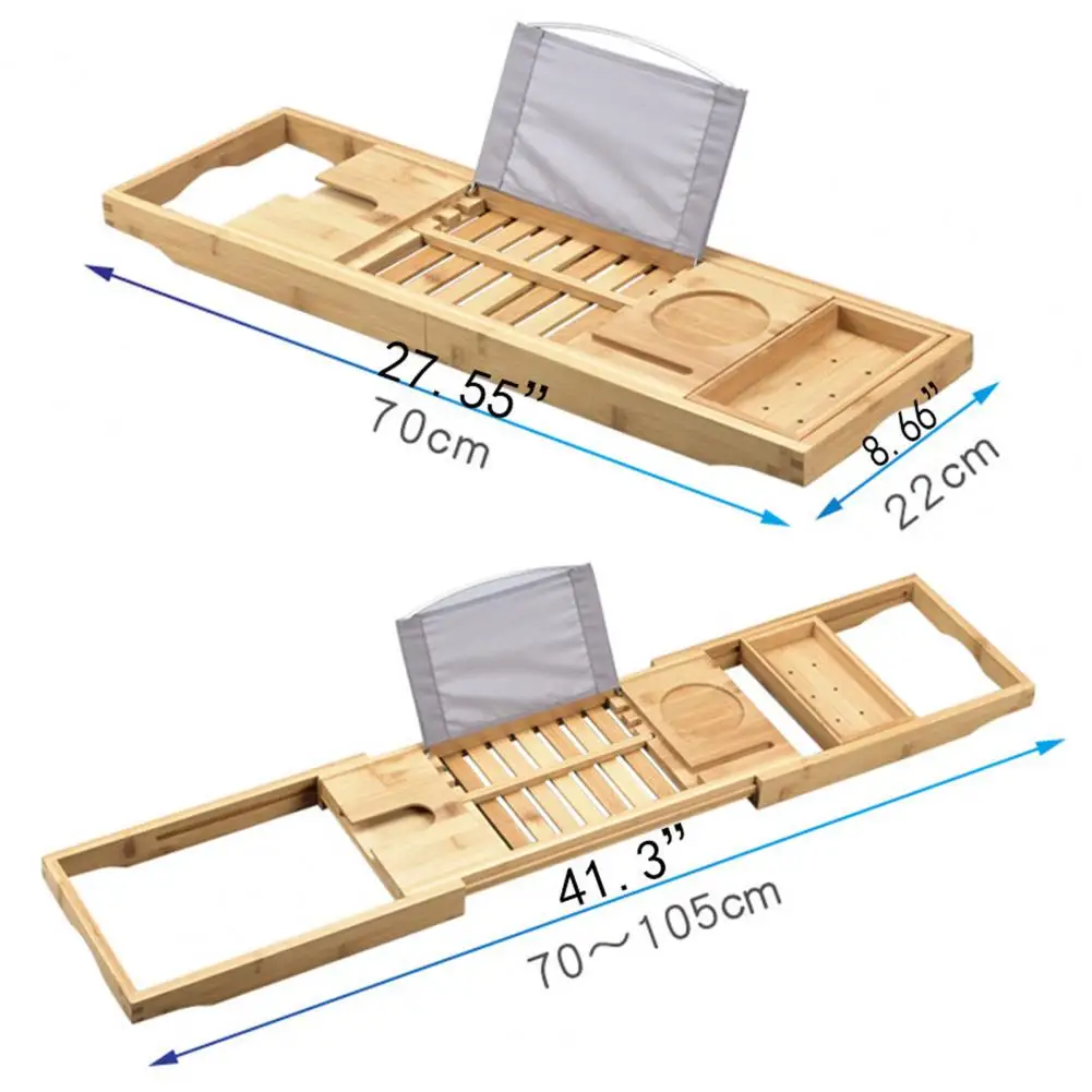 Plateau de baignoire polyvalent avec porte-verres à vin, étagères et étagères latérales profondes.