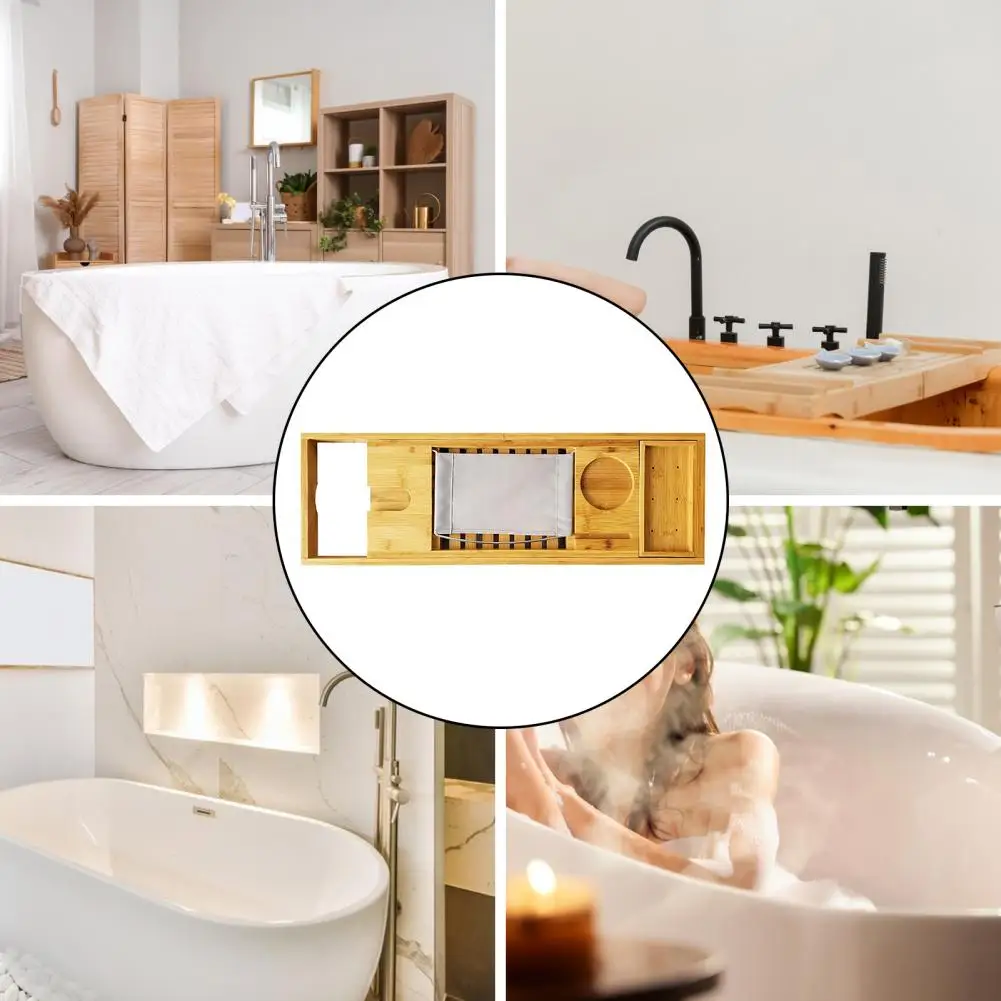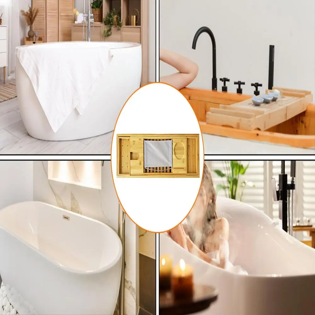 Étanche Caddy de bain Plateau de baignoire Plateau de bain luxueux en bambou avec porte-verre à vin Étagère réglable Support de livre pour Ultimate