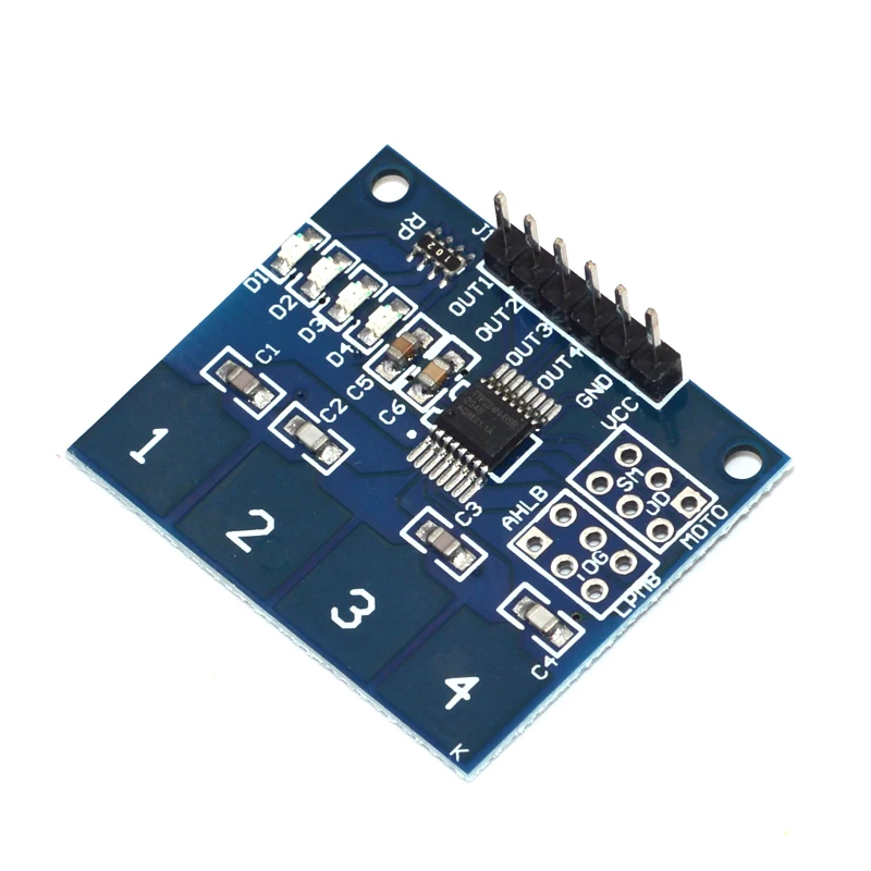 Onboard TTP224 capacitive 4-button touch sensing IC