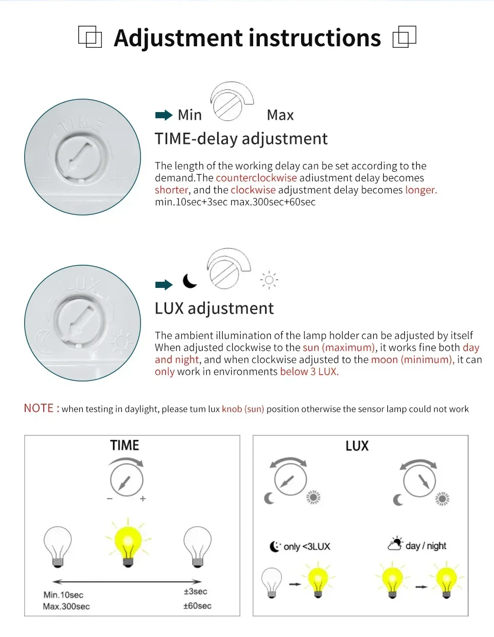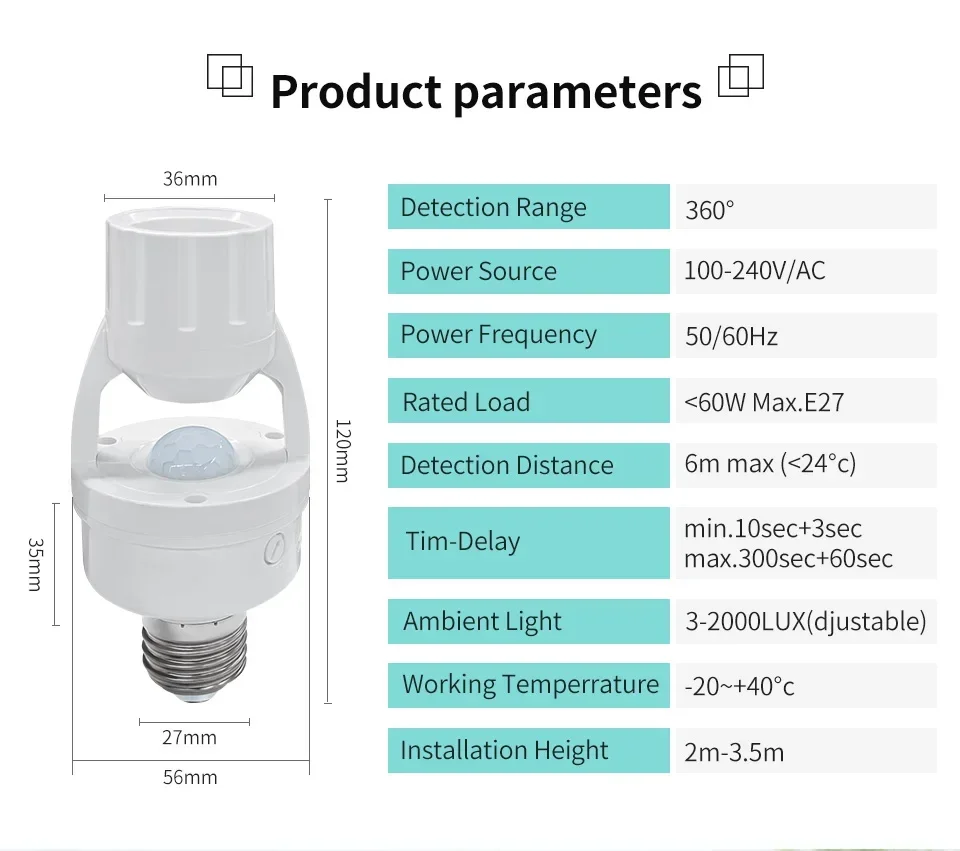 - Ambient Light: 3-2000LUX (adjustable)