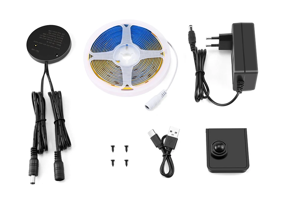 Distance RF sans fil : < = 10 M (Distance du commutateur du capteur de mouvement vers le récepteur RF) Tension d’entrée : AC100V-240V Adaptateur secteur : prise UE / prise US Caractéristiques : Les bandes lumineuses LED sous armoire sont une excellente ajout à votre configuration d’éclairage de la maison ou du bureau.Ces lumières polyvalentes peuvent être installées facilement à utiliser l’autocollant 3M inclus, le fait parfait pour une utilisation dans votre cuisine, votre garde-manger, une chambre à coucher, une armoire ou un placard.Avec détecteur de mouvement PIR portable, vous pouvez contrôler les lumières sans toujours d’avoir au toucher, et c’est plus flexible pour coller partout que vous aimez, simple et facile à installer. Paquet inclus : 1. Bande lumineuse LED COB 2. Commutateur de capteur de mouvement PIR portable (batterie intégrée) Récepteur 3.RF. 4. Adaptateur secteur (prise UE/USA)