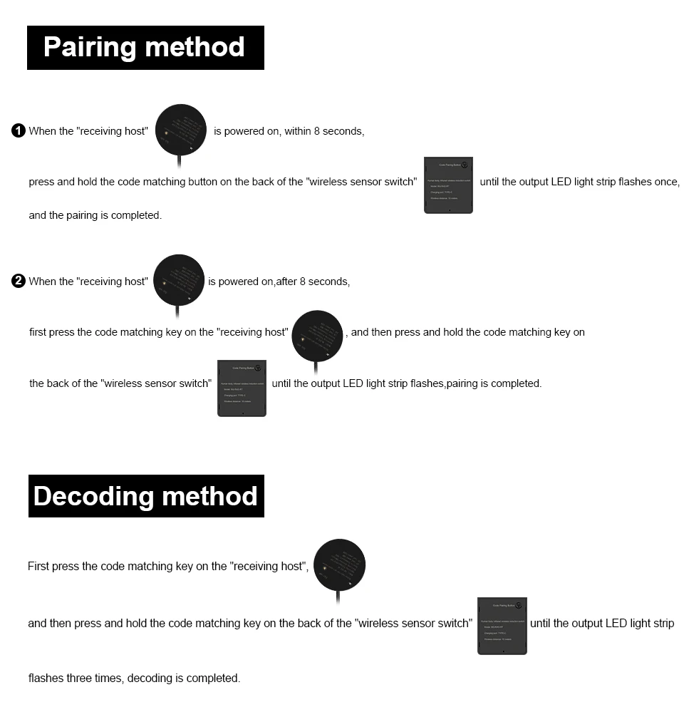 Type de commutation : commutateur de capteur de mouvement PIR portable sans fil (batterie intégrée de 450 mA, peut être installé partout).
