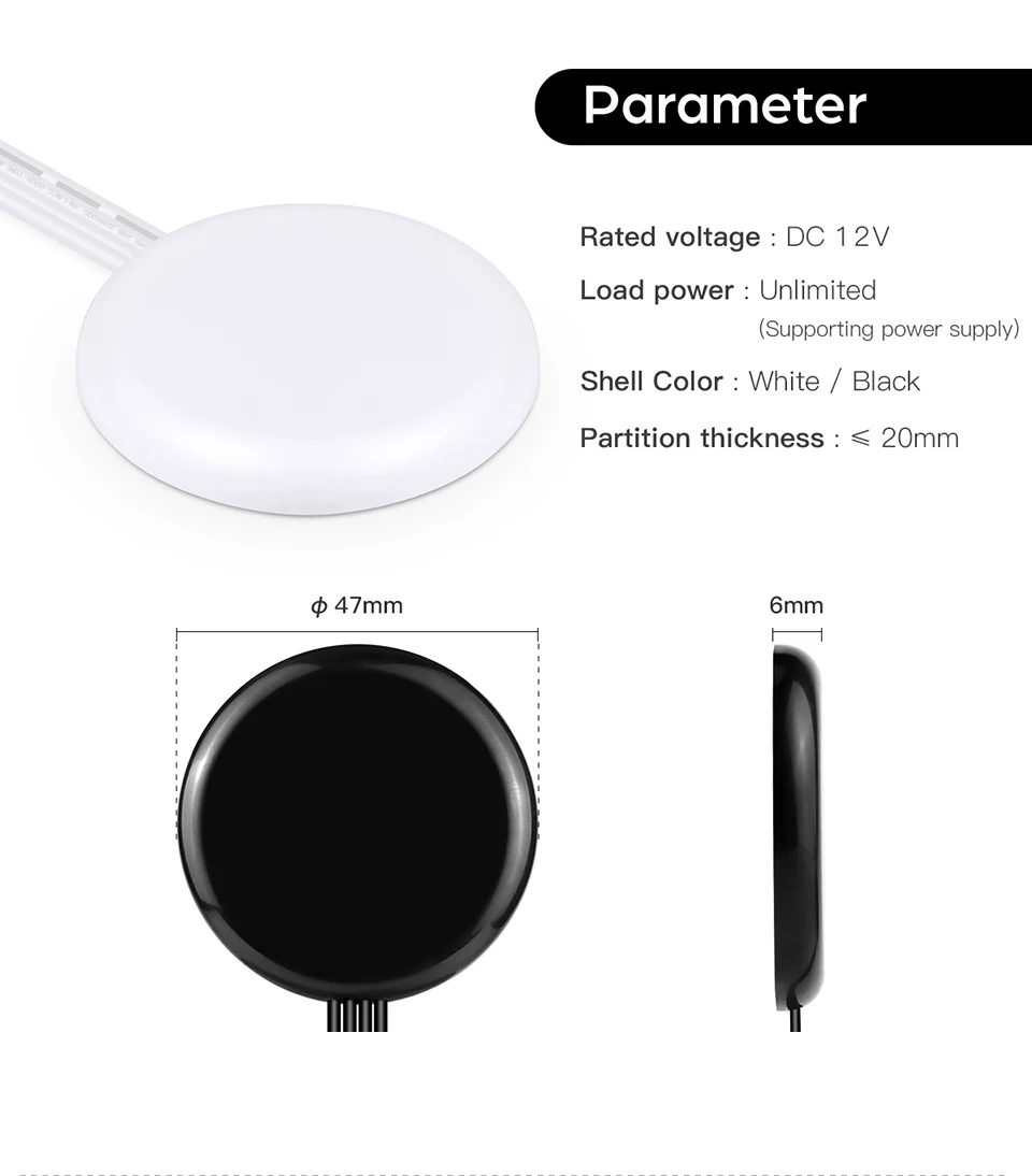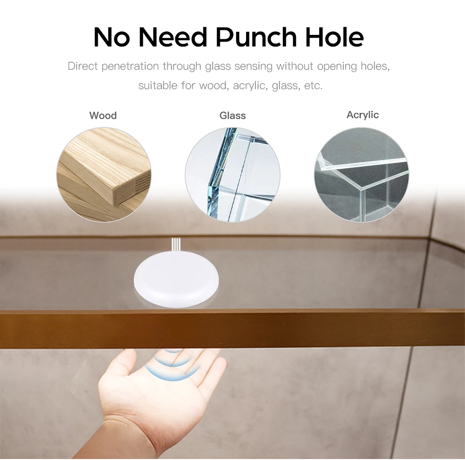 1. L’interrupteur de capteur de commande à variateur tactile intelligent est utilisé derrière une planche de bois (comme une armoire de cuisine, une armoire, un placard…) ou un miroir en verre.Il peut fonctionner sur une lumière LED DC 12 V, et il est plus flexible à coller où vous le souhaitez, simple et facile à installer.NE PAS BESOIN DE TROU OUVERT!!!