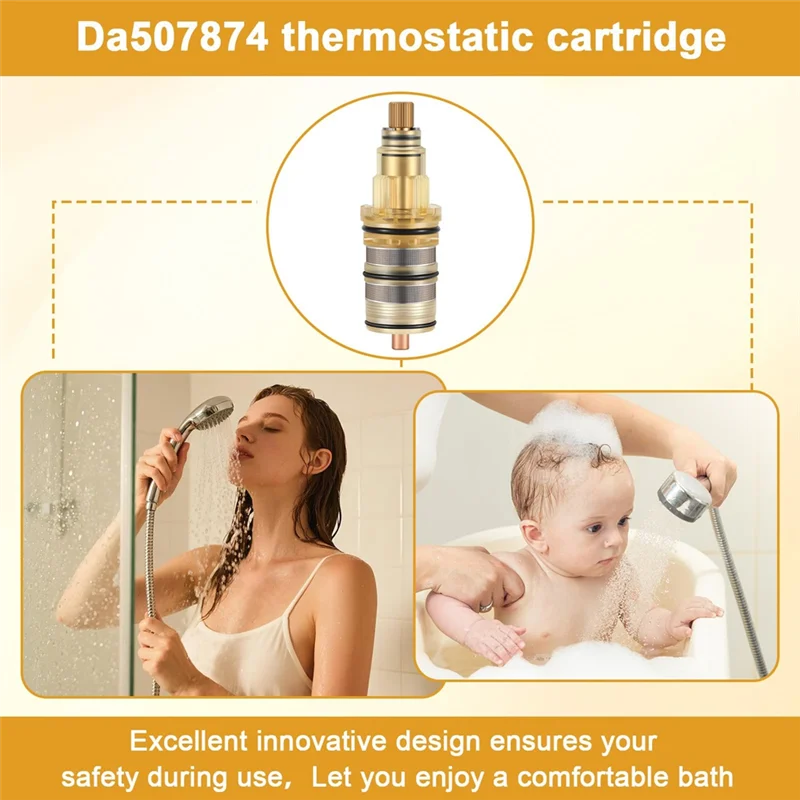 Contrôle de la température : la cartouche de douche thermostatique Da507874 est dotée d’une sonde de détection de température en spirale en alliage à mémoire très sensible, fournit un contrôle précis de la température, ajustant le débit d’eau chaude et froide et maintient la température confortable dont vous avez besoin, améliore l’expérience de bain.