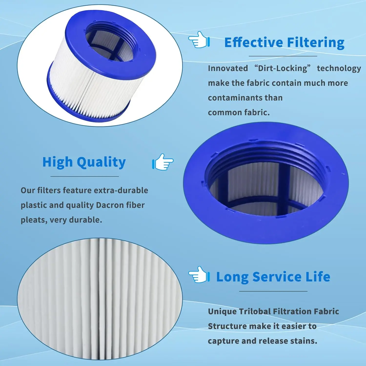 • Trilobal Fabric: The Screw-On hot tub filter incorporates advanced filtration technology with "trilobal fabric" and appropriate pleats to maximize water flow. This ensures that the finest dust and debris are effectively trapped, providing you with clean and clear spa water.