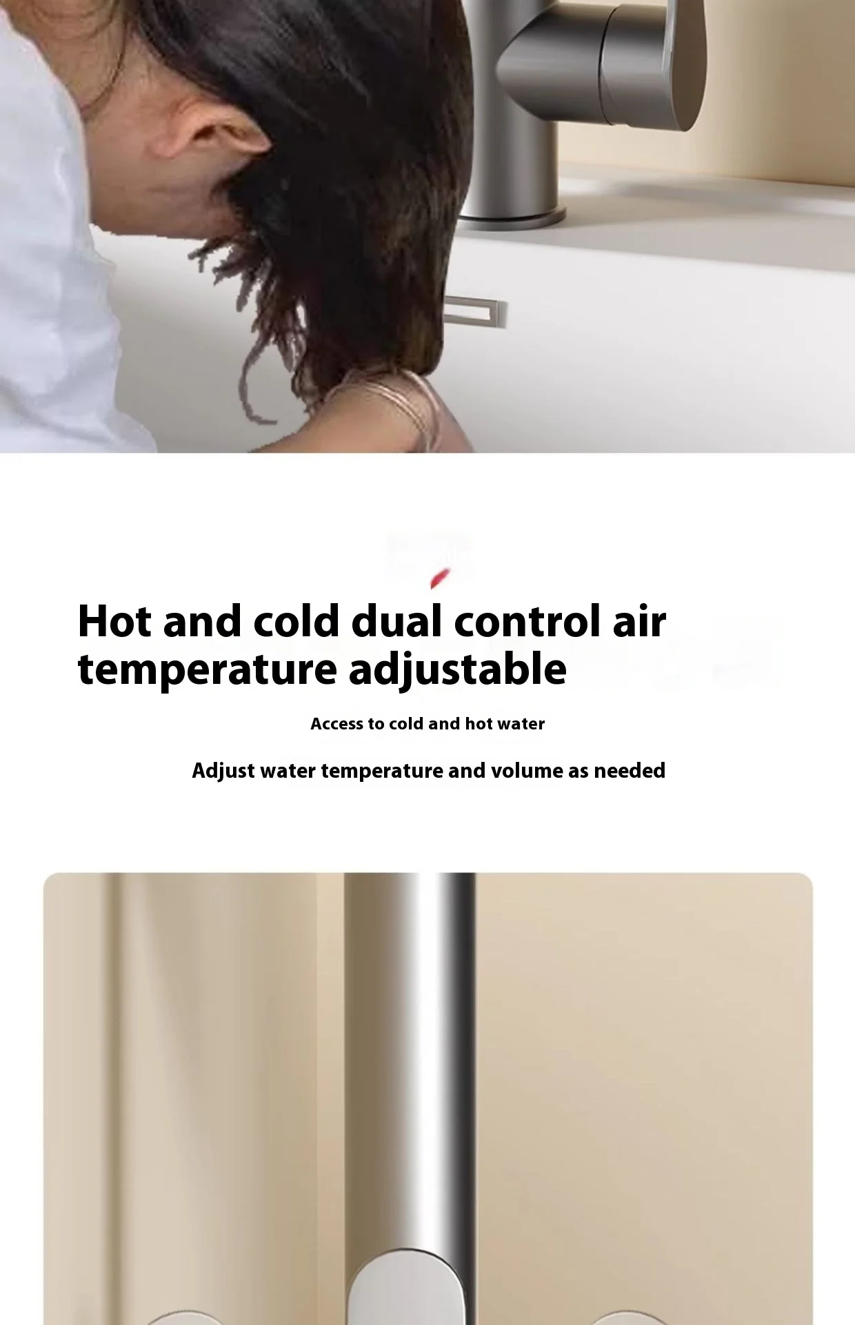 2.**Double usage chaud et froid** : prend en charge la fonction de mélange d’eau chaude et froide, pratique pour ajuster la température de l’eau en fonction de la saison et des préférences personnelles, plus confortable et convivial.