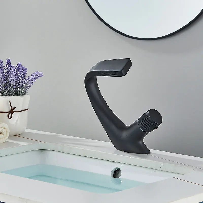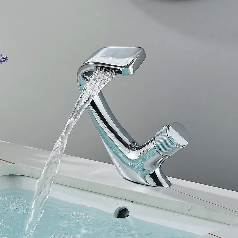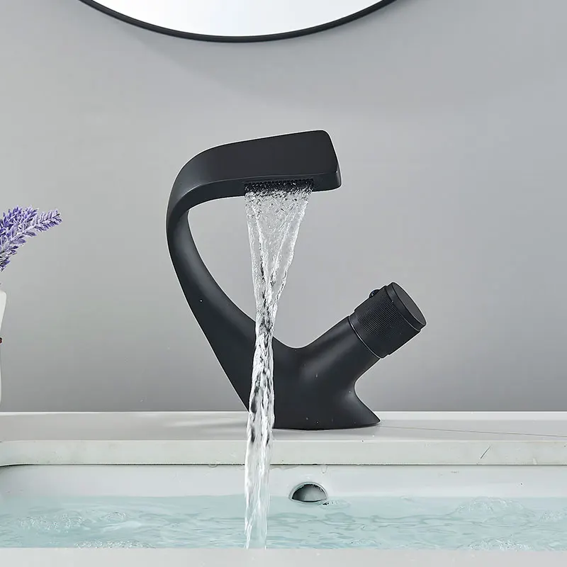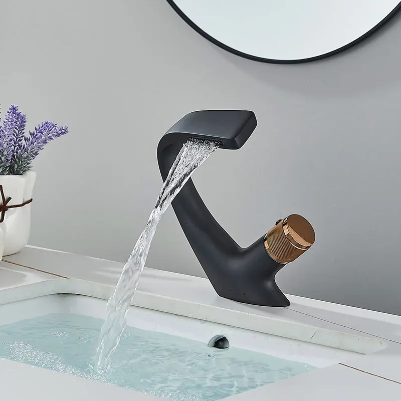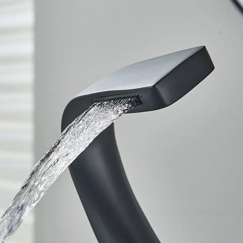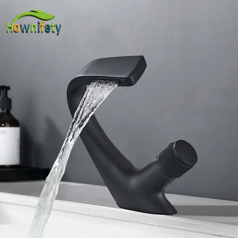 Robinet de lavabo de salle de bain noir mat cascade mitigeur d’eau chaude froide douce robinet de grue montage sur pont Art Design lavage tapware Chrome