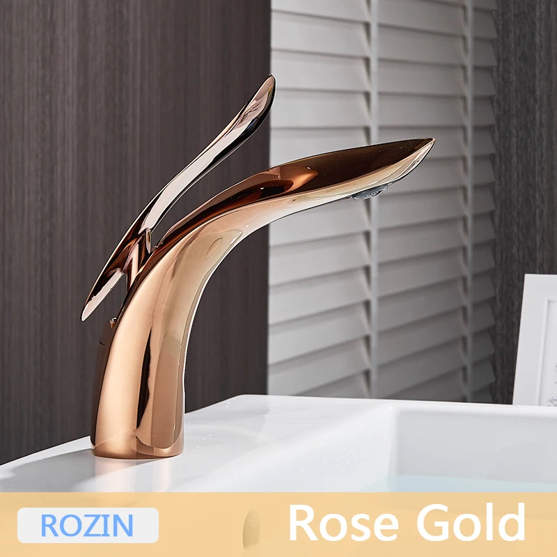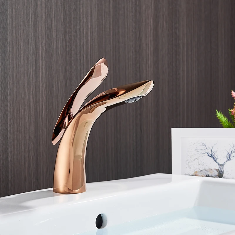 Robinets de lavabo dorés de luxe robinet de salle de bain en or rose cascade robinet d’eau froide et chaude mitigeur de robinet de lavabo monotrou