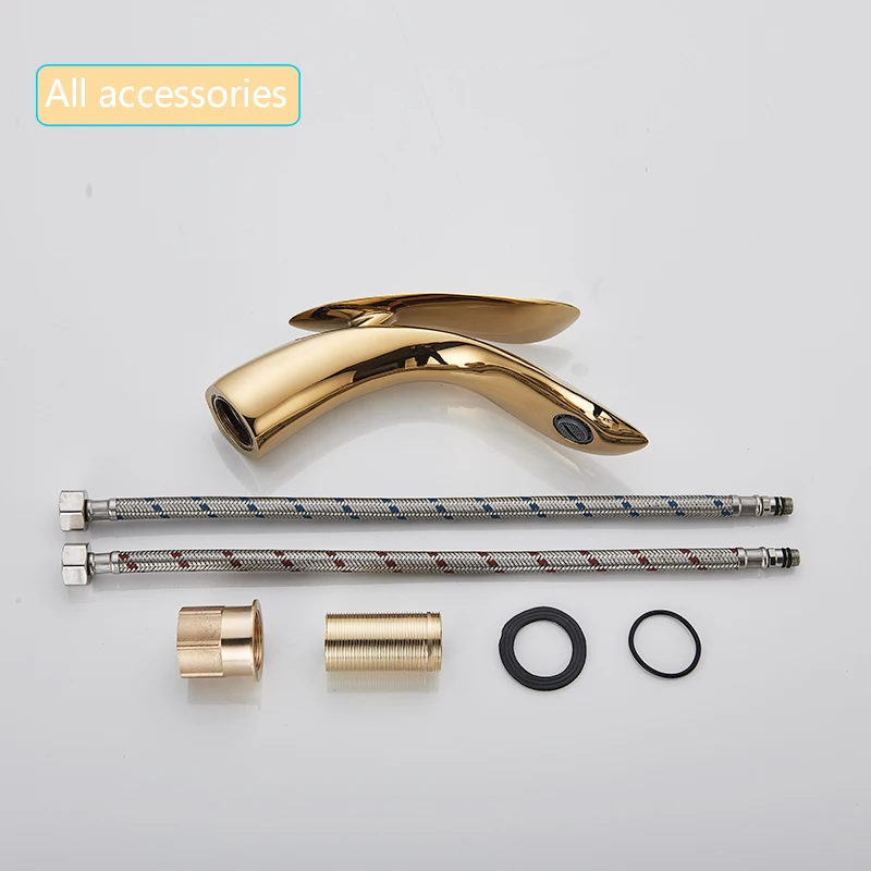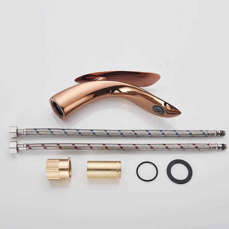 Luxury Golden Basin Faucets Rose Gold Bathroom Faucet Waterfall Cold and Hot Water Tap Single Hole Basin Faucet Mixer Taps