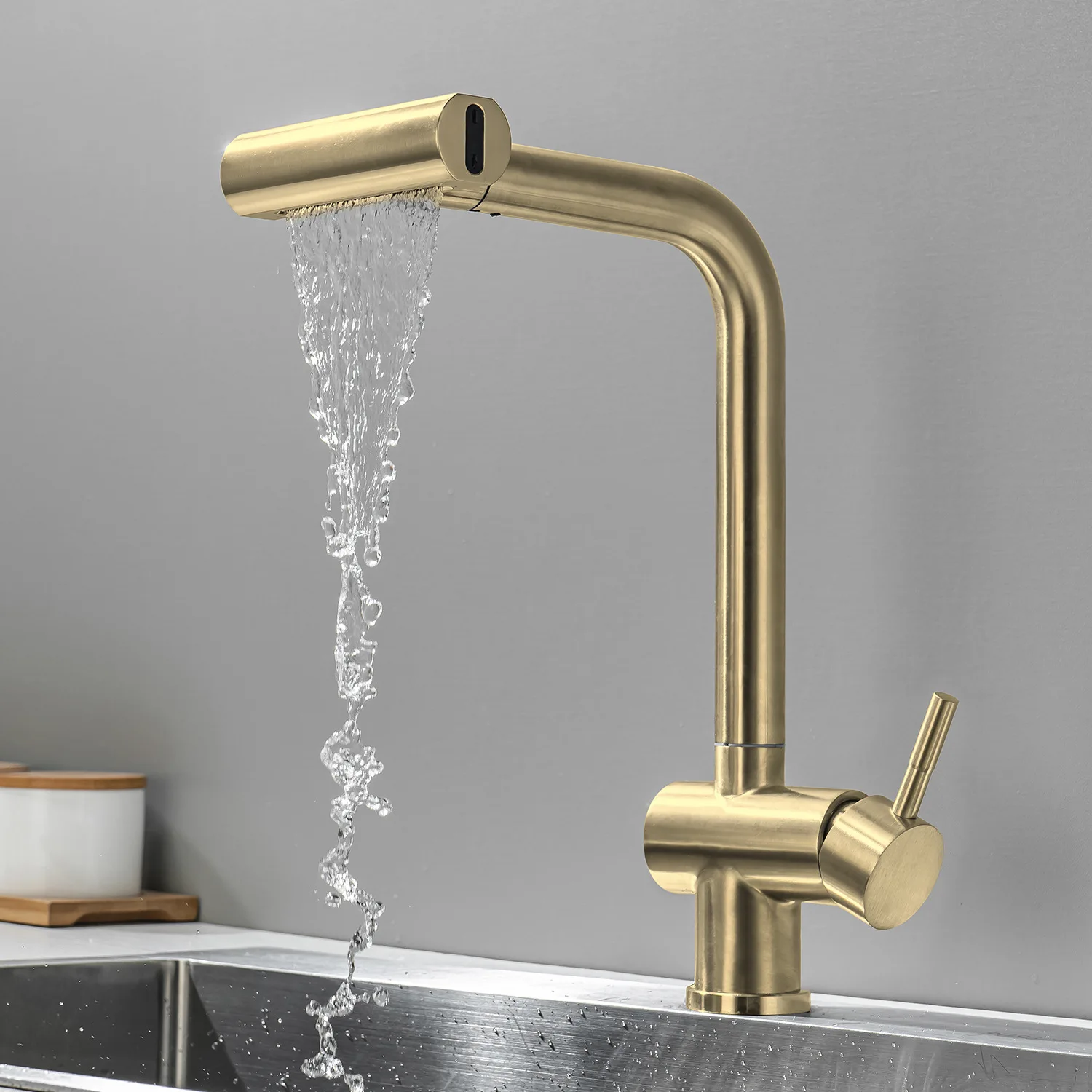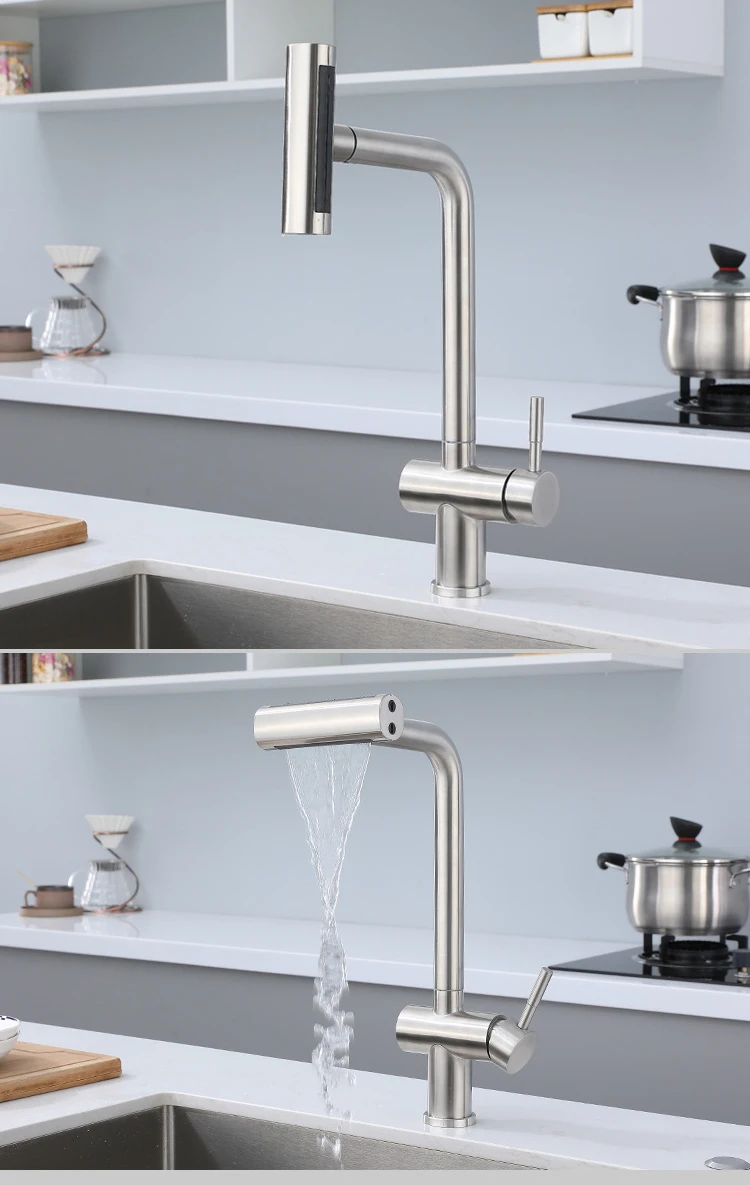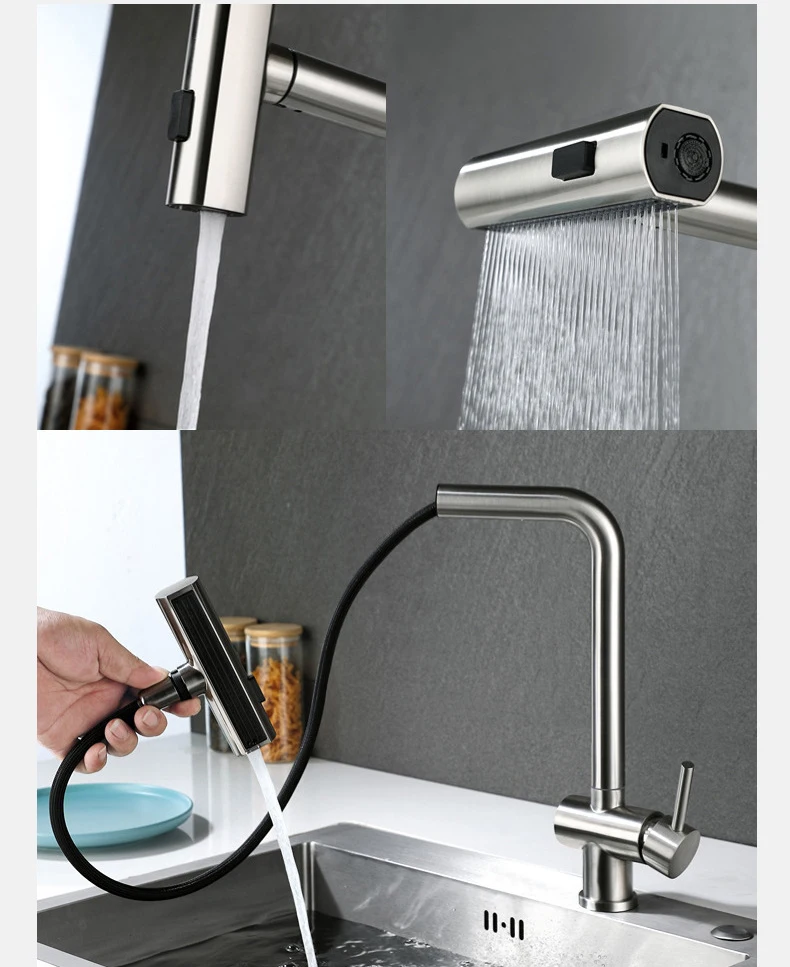 - ☛ Facilitez votre lavage : touchez le robinet de cuisine avec deux fonctions qui incluent un flux aéré et un spray puissant.Lorsque vous ressentez un faible débit, la fonction de pulvérisation améliorée vous permet d’augmenter le débit de 70 %, ce qui vous permet de rincer la vaisselle et de remplir les récipients rapidement et facilement.Tuyau rétractable de 20 pouces pour robinet de cuisine intelligent qui offre une grande maniabilité pour faciliter vos tâches quotidiennes.
