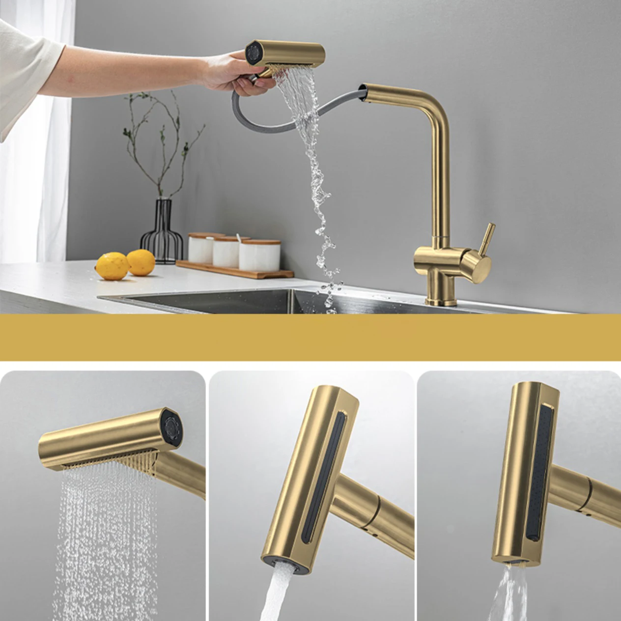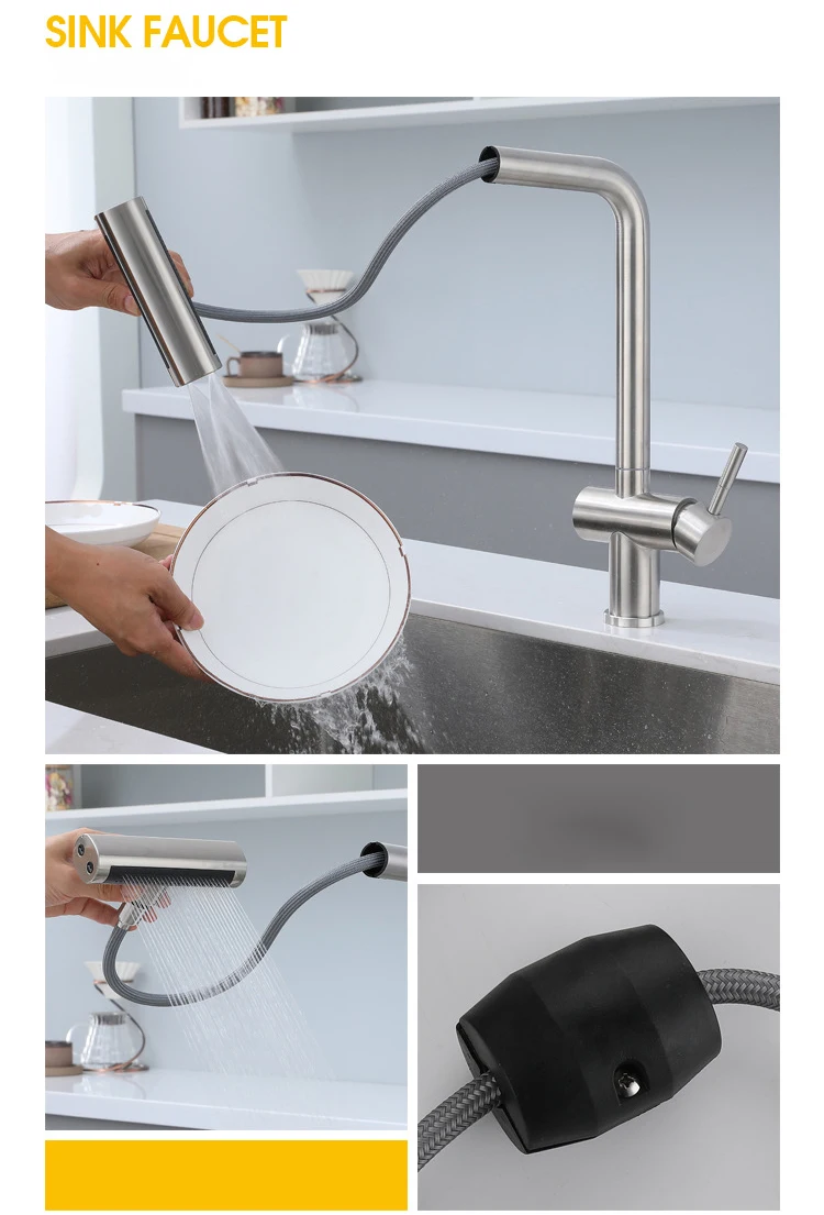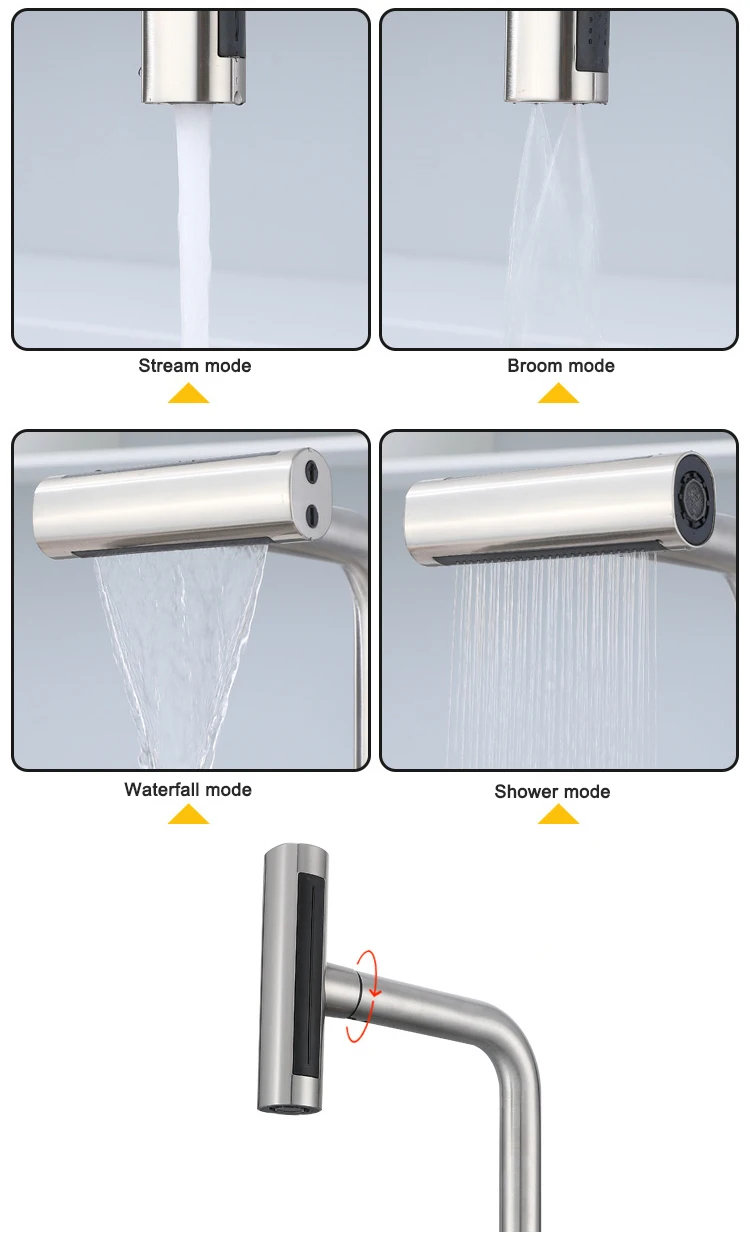 ☛ PULL OUT SPRAYER : pulvérisateur et buse rotatifs à 360 degrés, buse rotative à arc élevé à 360 degrés peut fournir un lavage complet pour votre évier de cuisine, un robinet à poignée unique peut contrôler la température et le débit plus pratique. Le robinet d’évier utilitaire facilite diverses tâches d’espace dans la cuisine.