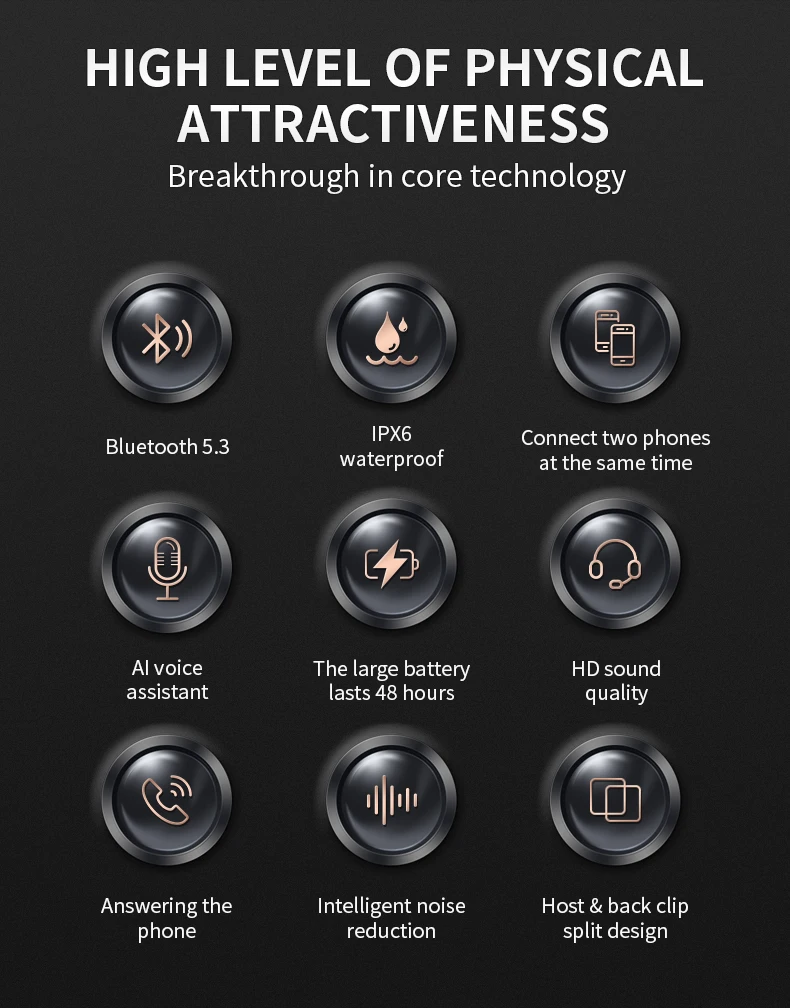 Caractéristiques : Bluetooth 5.3, étanche IPX6, appels Bluetooth clairs et forts, batterie de grande capacité.