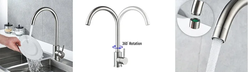 2. Le robinet d’évier de cuisine est livré avec une tête de pulvérisateur pivotante à 360 degrés est parfait pour 1,1.5, évier de cuisine à 2 bols, aérateur peut fournir un débit d’eau régulier et lisse sans éclaboussures. Levier unique contrôle facilement la température de l’eau et le volume de débit.