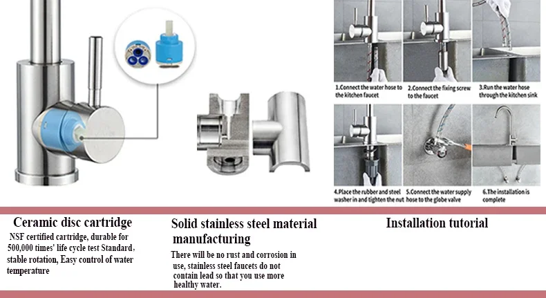 1. Le robinet de cuisine est fabriqué en acier inoxydable de haute qualité, qui peut facilement faire face à la corrosion de surface dans des environnements humides, protéger votre santé quotidienne et celle de votre famille et fournir G3/8 .1/2. Tuyau de raccordement de calibre 9/16, répondant à tous les besoins quotidiens.