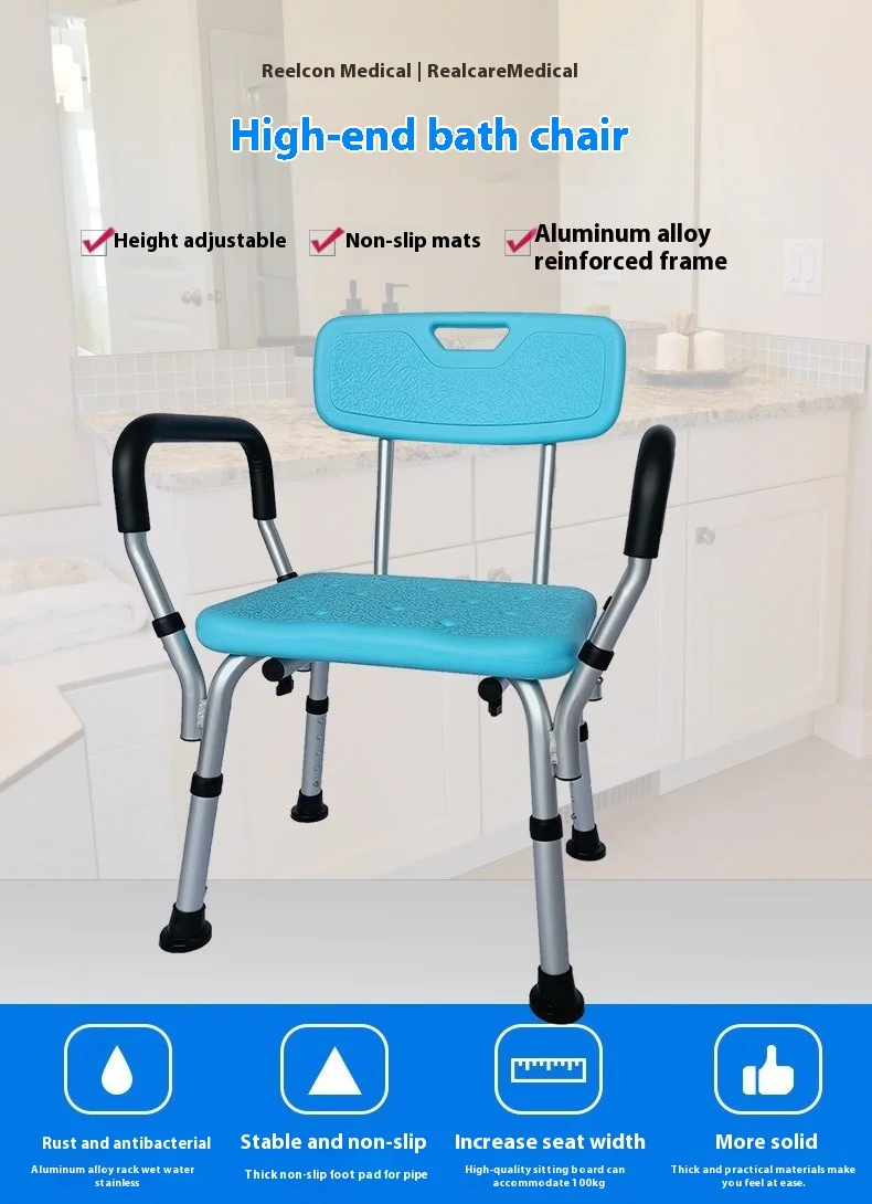 Chaise de douche pour douche intérieure avec accoudoirs et dossier, siège de douche robuste et éclatable pour baignoire, siège de bain de sécurité réglable en hauteur