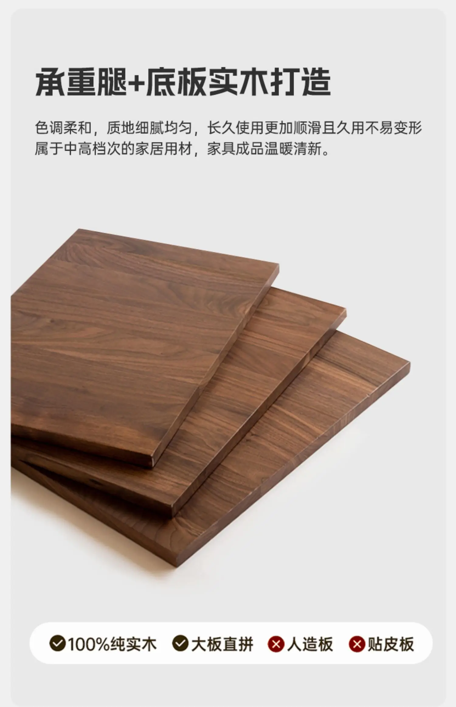 - Finish material: Solid wood