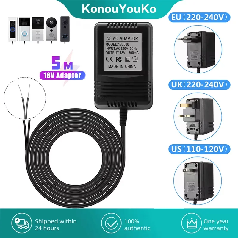 Chargeur aved 18V AC, adaptateur secteur 220V-240V, prise UE UK US pour WiFi, sonnette vidéo intelligente, caméra, sonnette de porte