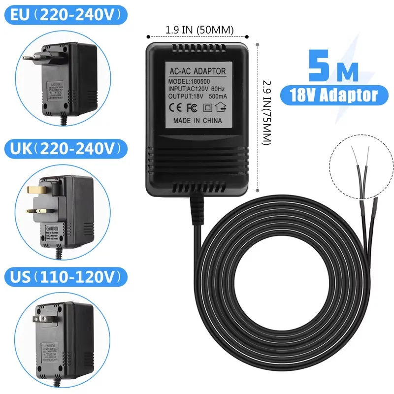 Chargeur aved 18V AC, adaptateur secteur 220V-240V, prise UE UK US pour WiFi, sonnette vidéo intelligente, caméra, sonnette de porteChargeur aved 18V AC, adaptateur secteur 220V-240V, prise UE UK US pour WiFi, sonnette vidéo intelligente, caméra, sonnette de porte