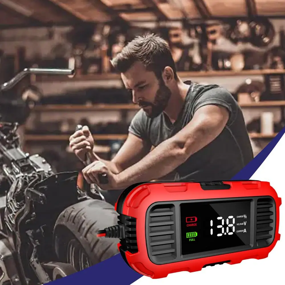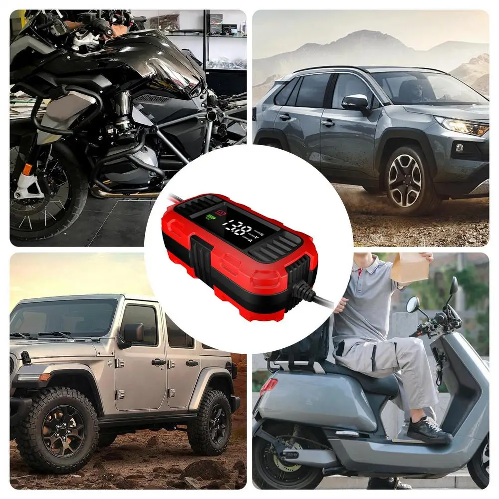 5. Soins de moto : Améliorez votre routine d’entretien de la batterie avec notre chargeur intelligent et entièrement automatique. Ce appareil avancé n’est pas seulement offre une charge de maintien, mais une fonction également comme mainteneur de chargeur de batterie. Gardez votre batterie de moto en forme supérieure avec plus facile