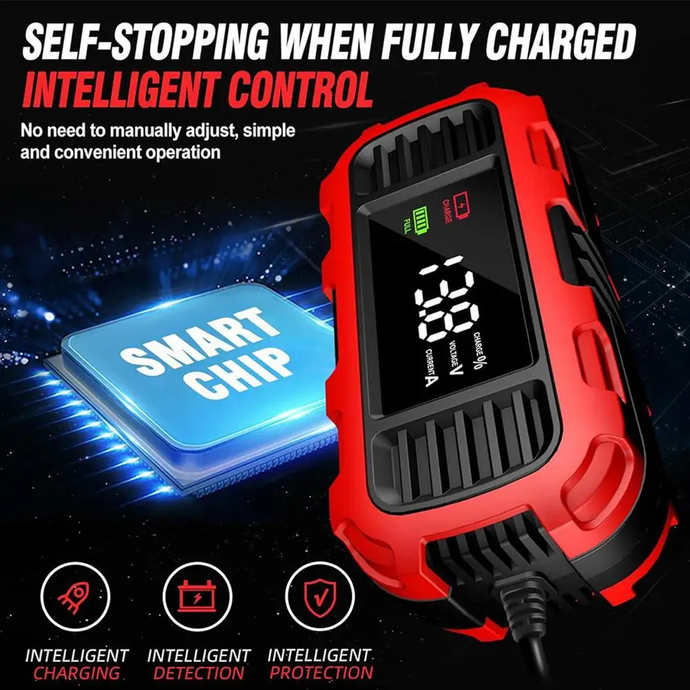 2. Progrès de charge moderne : un grand écran numérique fournit des mises à jour en temps réel sur la tension de charge, la courant et la pourcentage, garantissent une visualisation détaillée de l’état de la batterie comme vous connecte simplement et d’alimentation