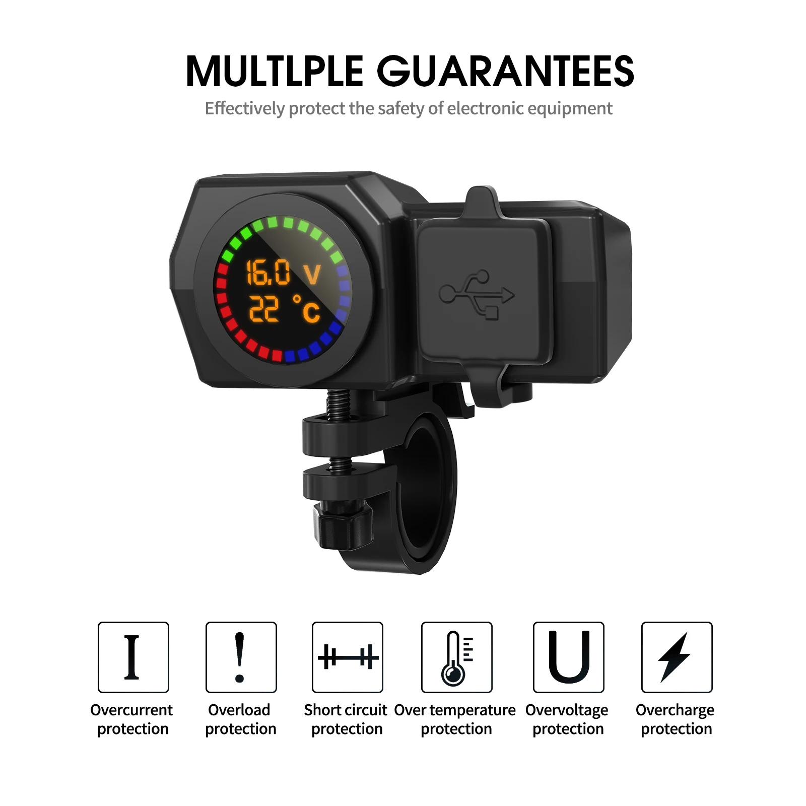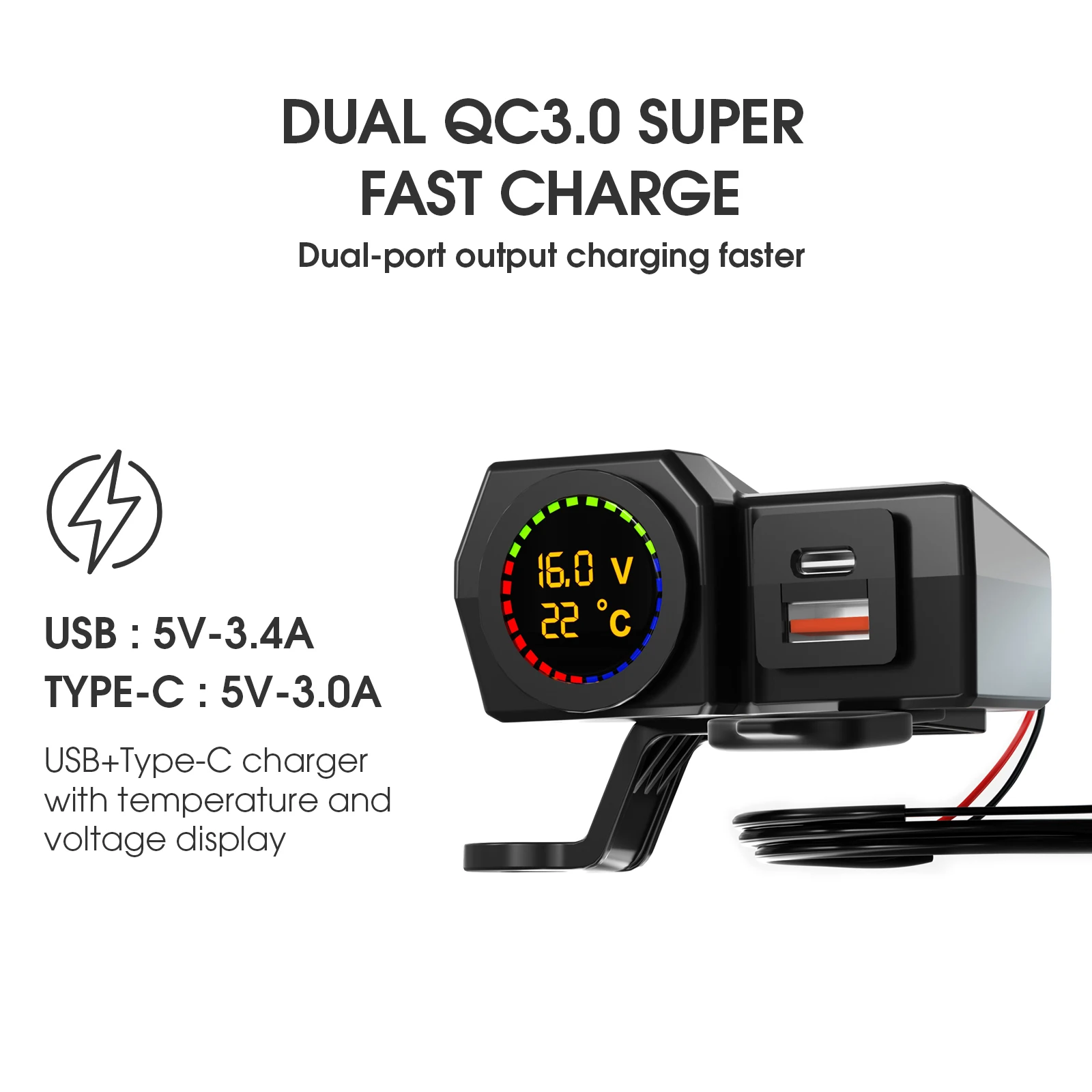 [Nom du produit]: moto avec écran couleur, affichage de la température et de la tension, double chargeur USB